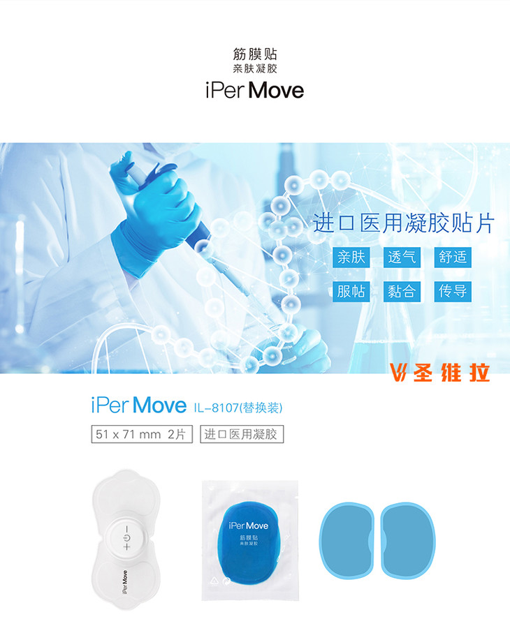 德国iPerMove筋膜贴替换亲肤凝胶贴片电动筋膜仪配件可清洁