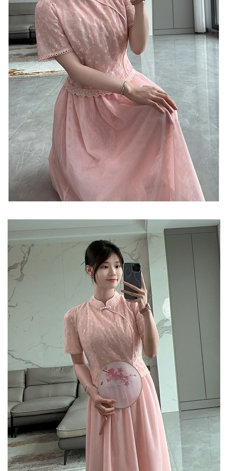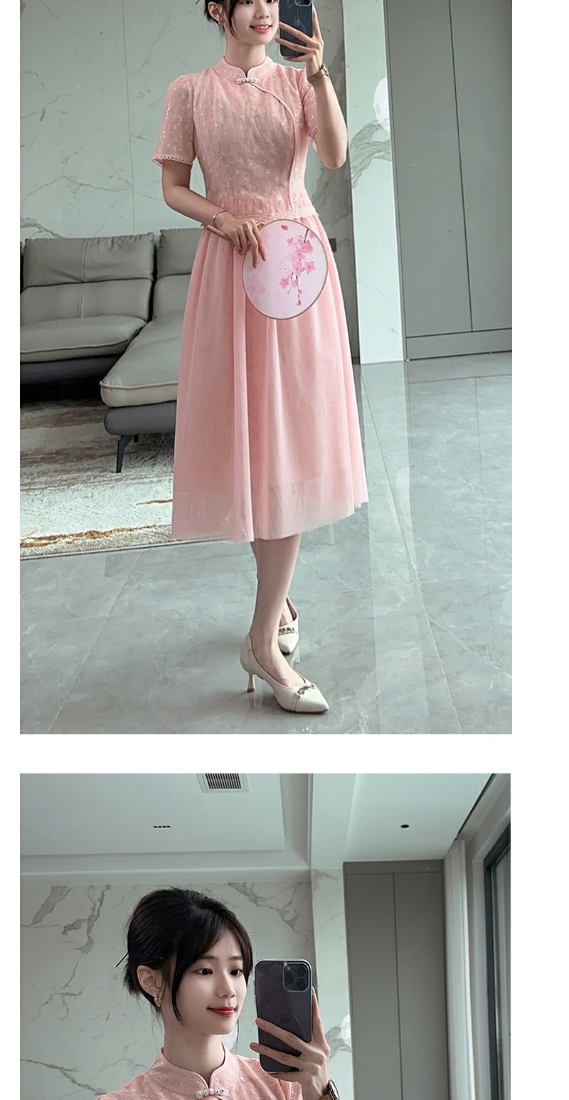 未风改良旗袍网纱连衣裙女夏2025夏季新款女装新中式国风短袖裙子