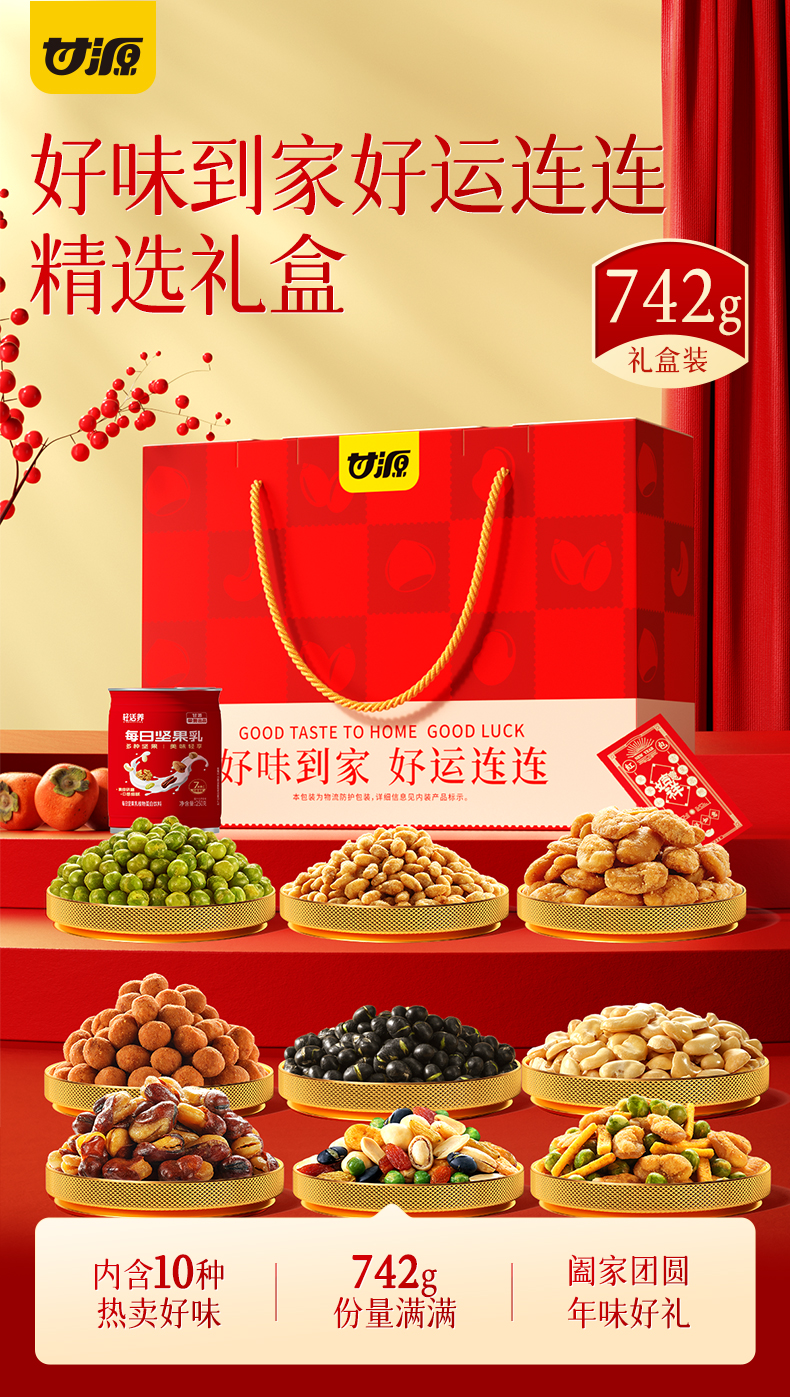 【好礼相送❗️好运连连礼盒】甄选品质原料制作,大份量实惠满满,多坚果美味齐全,新年零食大礼包,下午茶休闲干果炒货,马年新年送礼好物年货礼盒L-d