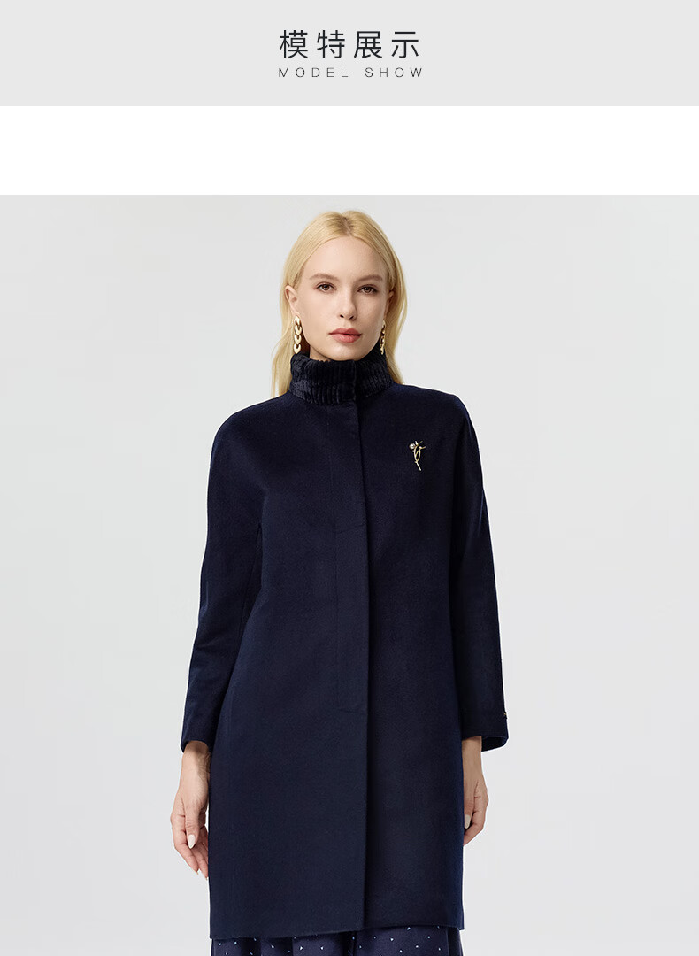 皮尔卡丹女装毛呢外套高原山羊绒爆款毛呢外套大衣P3413C3927N0