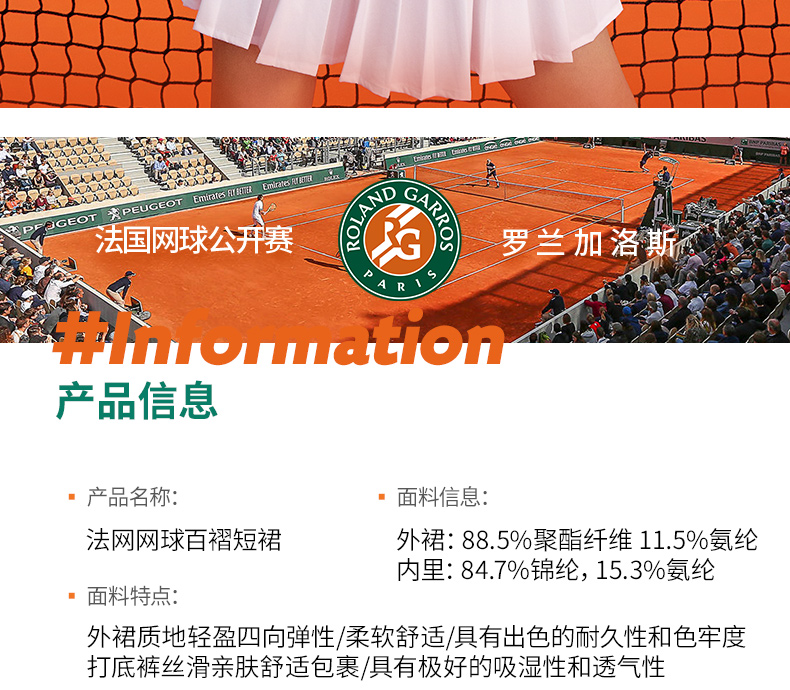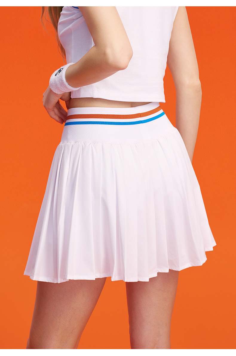 罗兰加洛斯法网网球裙女夏季新款白色百褶短裙撞色弹力半身运动裙