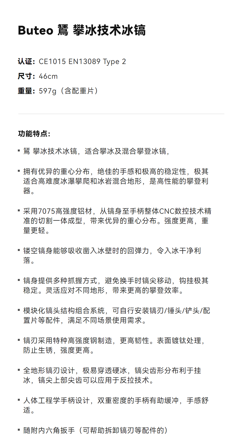 KAILAS凯乐石 Buteo 鵟 攀冰技术冰镐 EI102