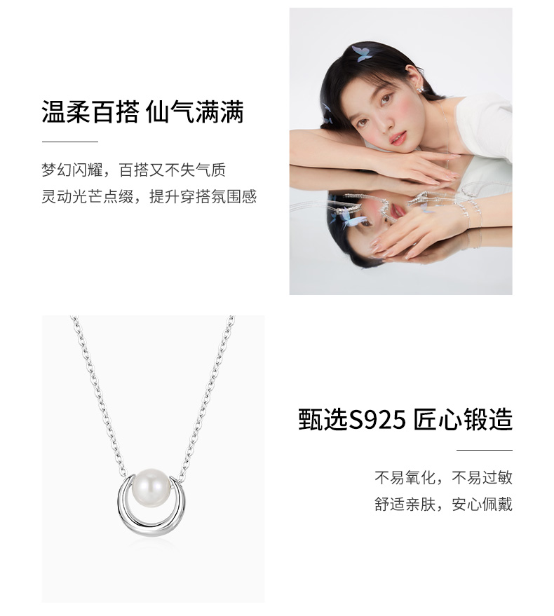 卡蒂罗/KADER 月影凝珠项链 U形月牙精致新中式复古优雅温柔气质锁骨链 通勤百搭小众轻奢设计