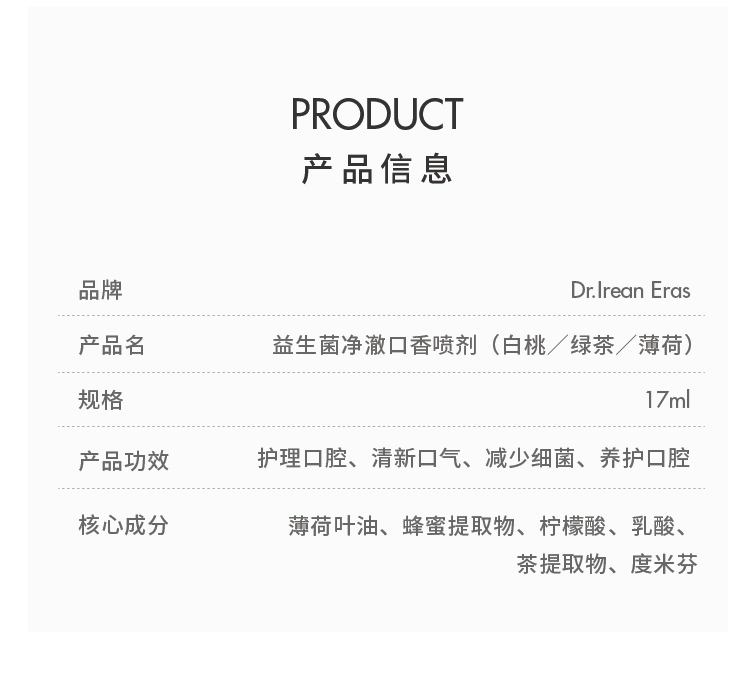 【品牌直发】Dr.Iream独特艾琳口喷益生菌持久型口气清新口腔清新喷雾剂17ml 男女