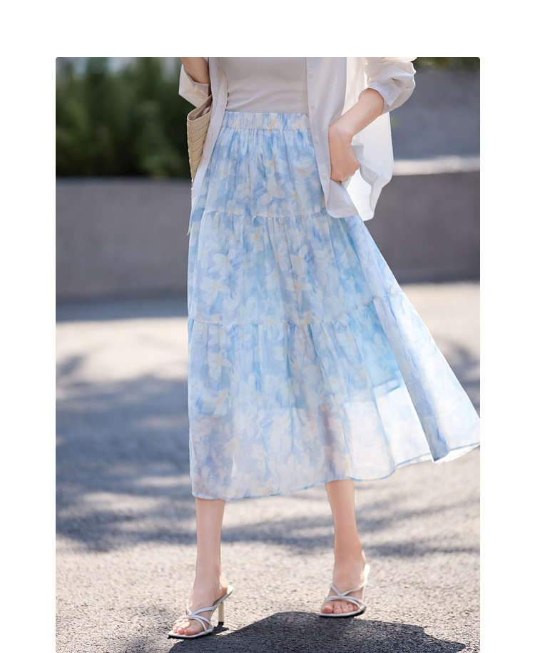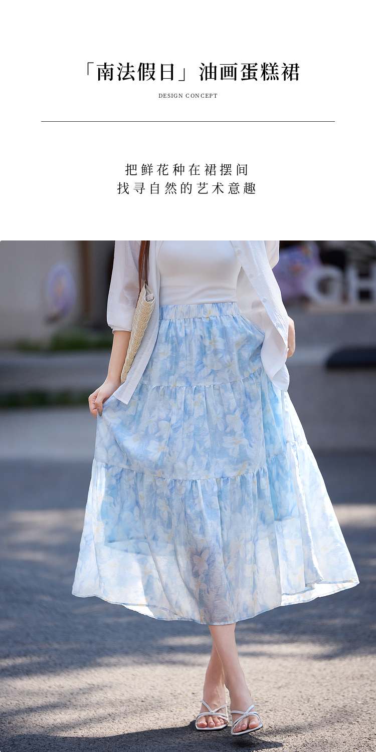 【专属特价】熙世界油画感花卉印花半身裙女夏季新款法式度假风a字雪纺蛋糕裙