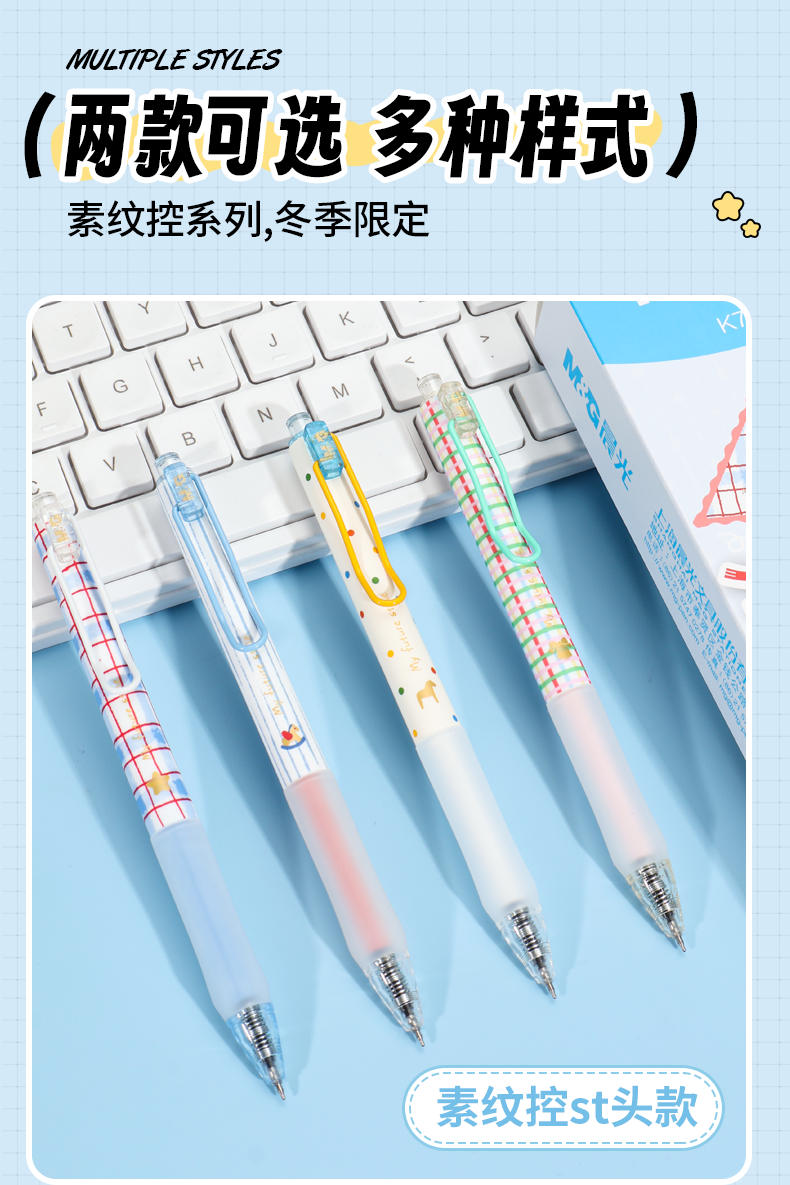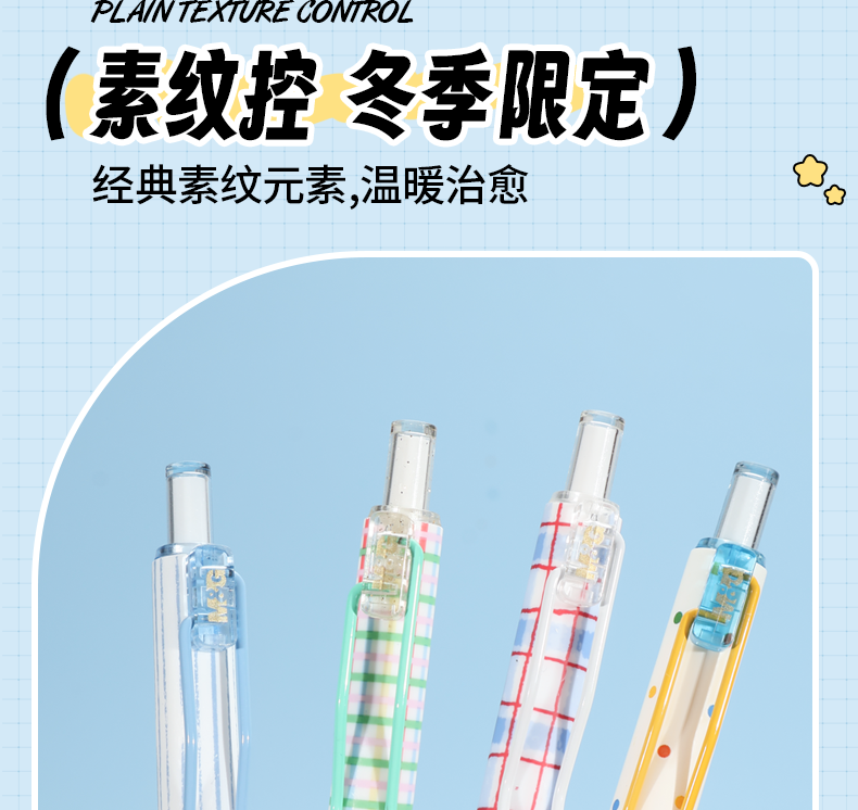 晨光素纹控冬季限定按动中性笔0.5mm
