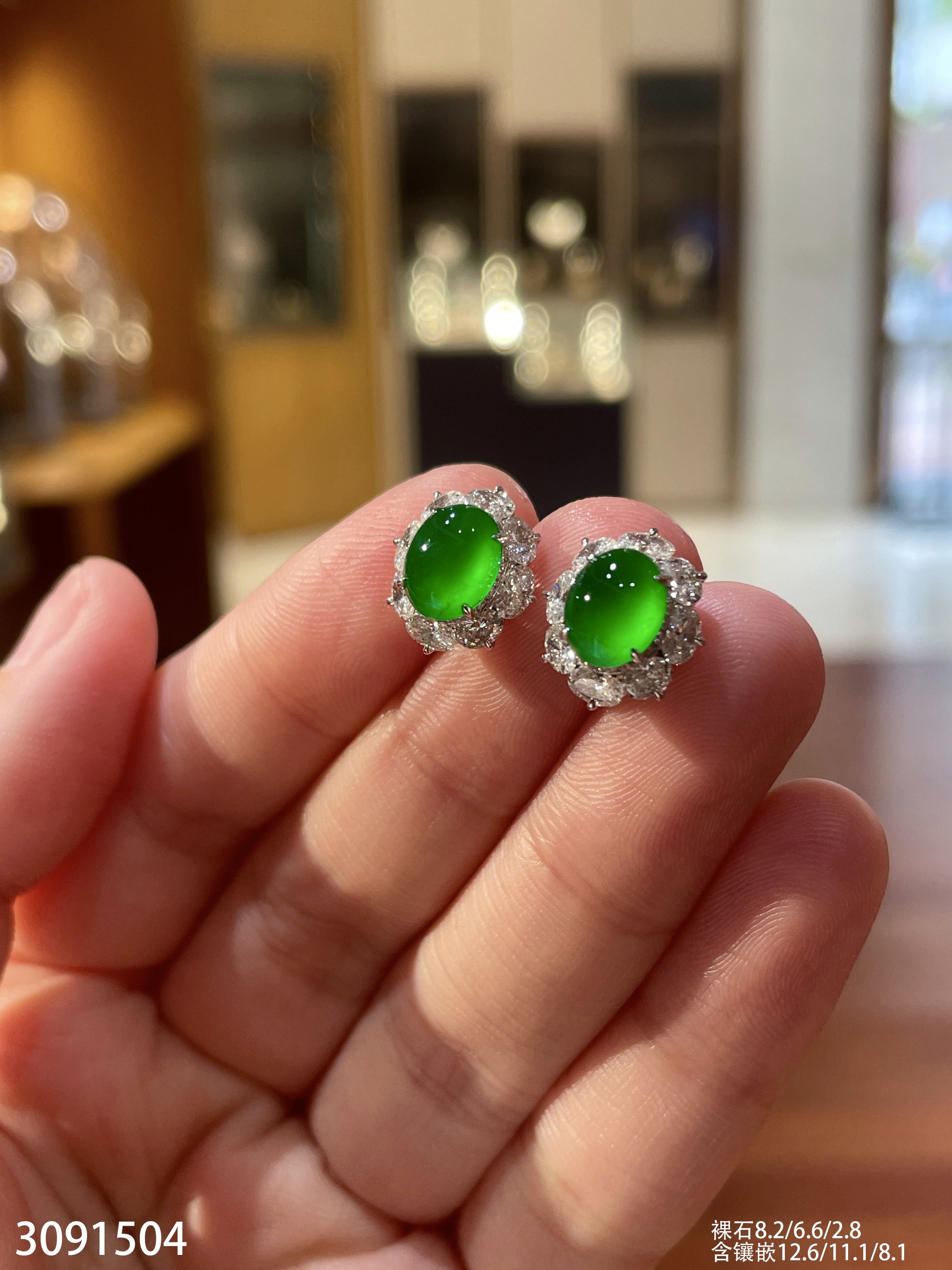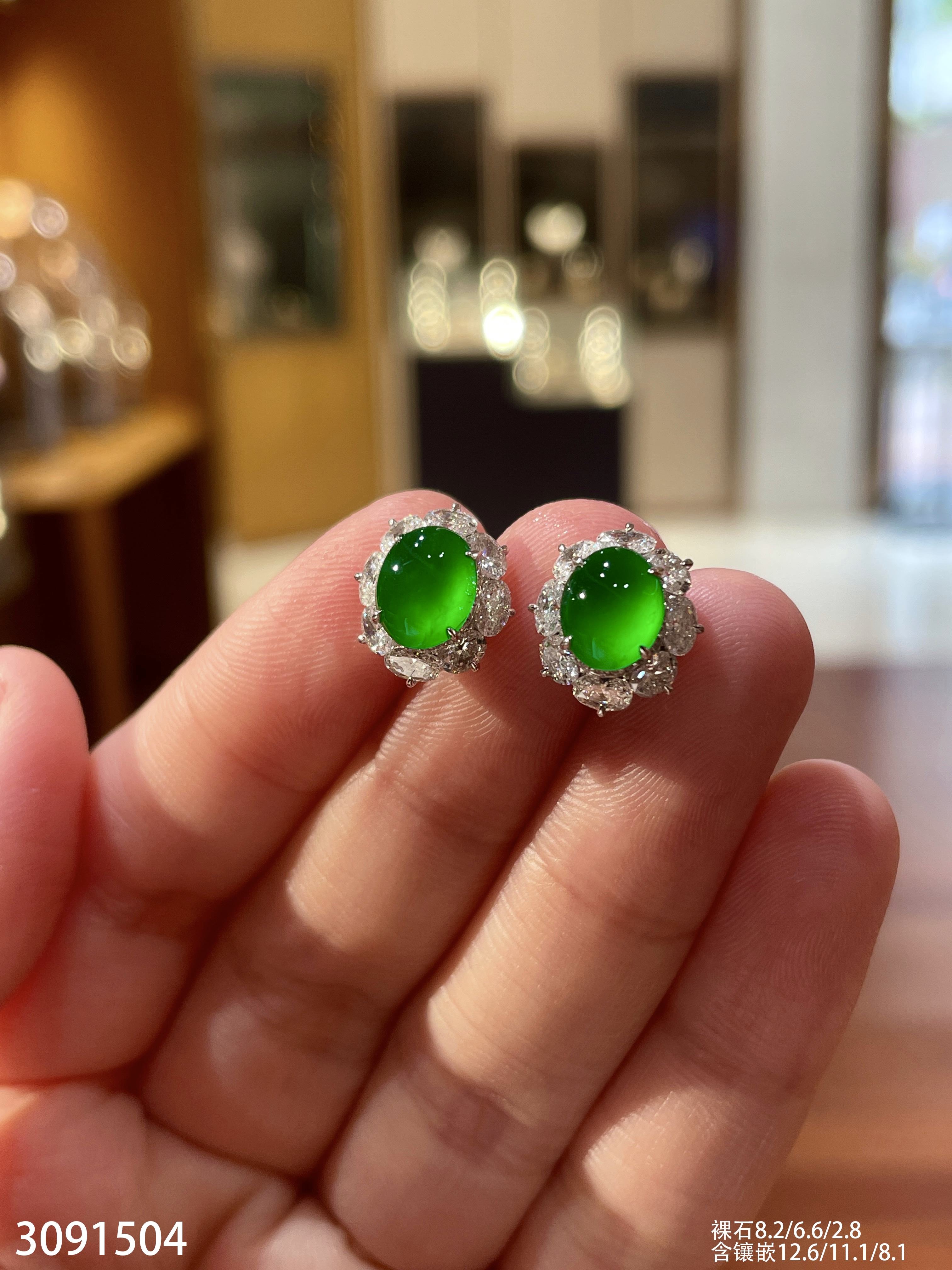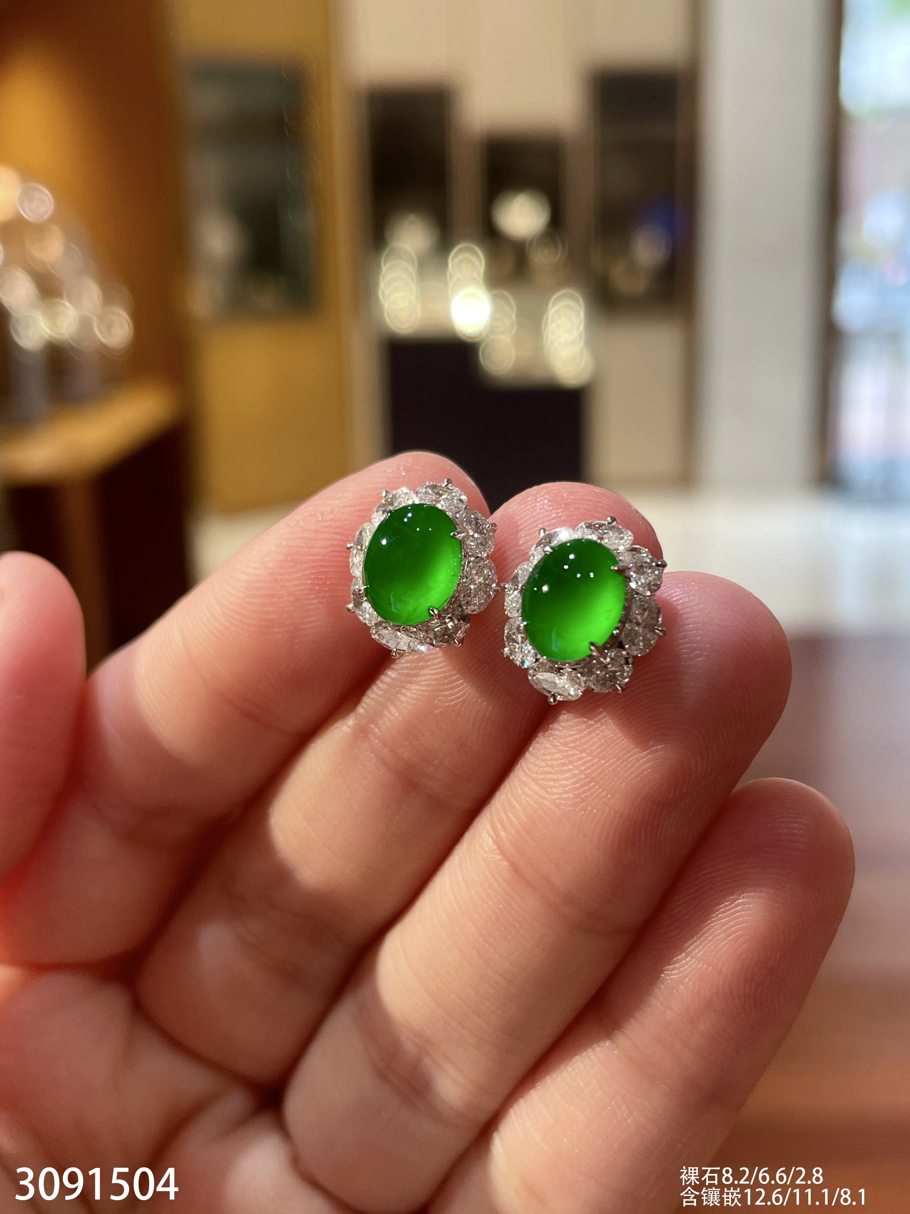 2181108、冰艳绿葫芦耳坠,22999