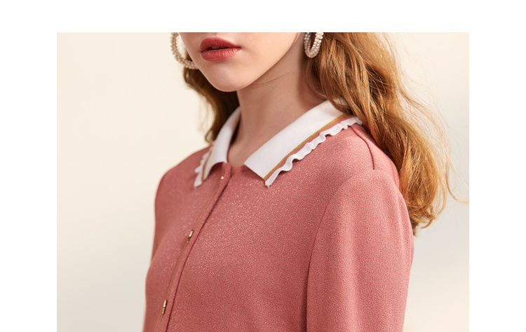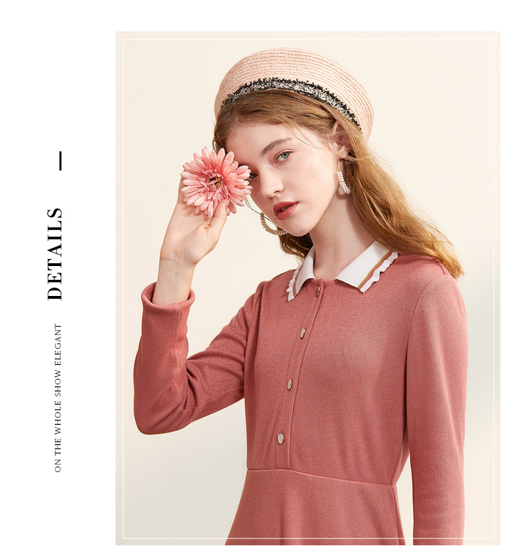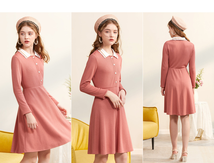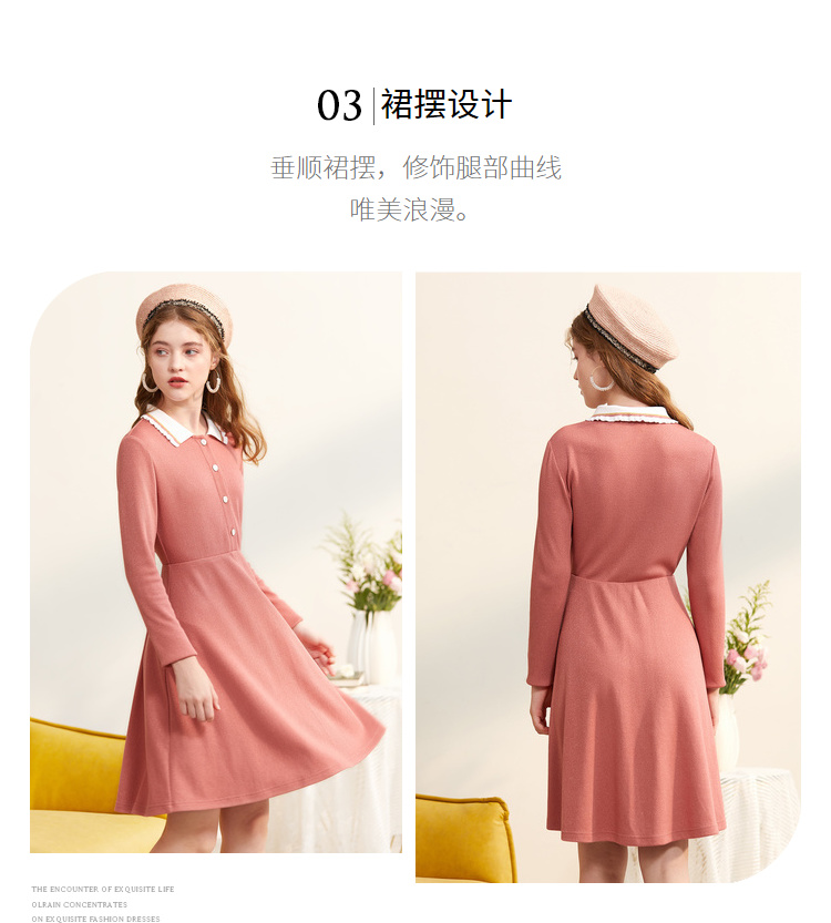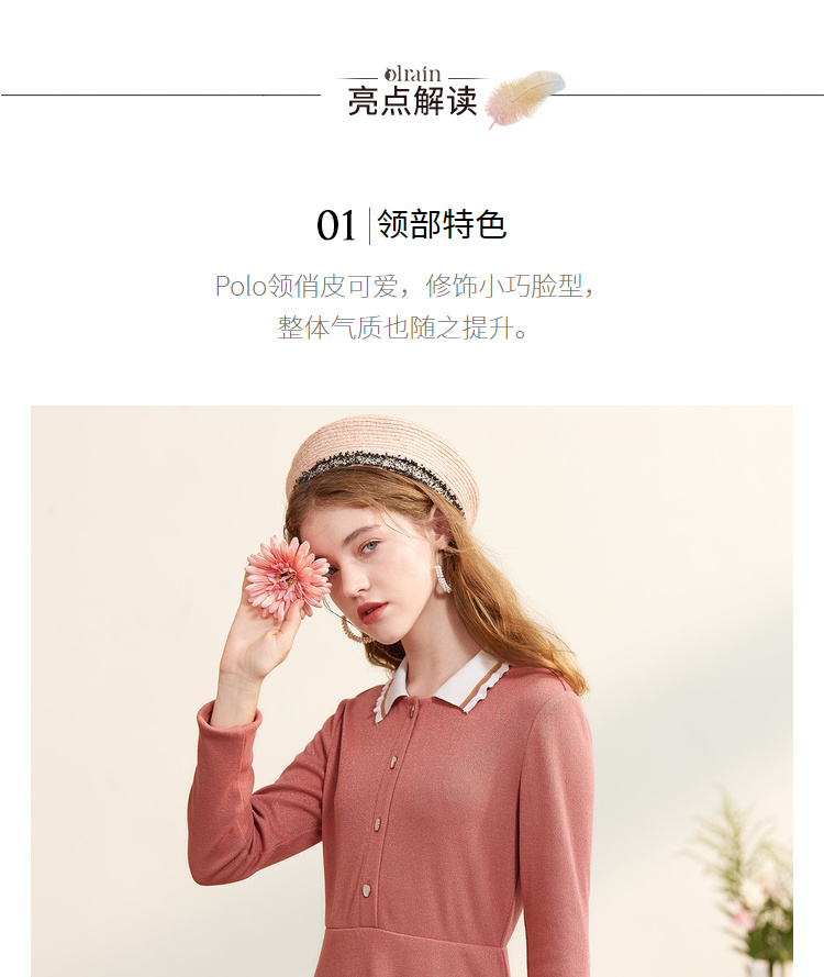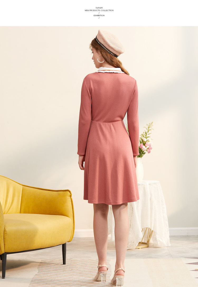 欧芮儿2019秋新品长袖polo领连衣裙女显瘦气质收腰中长款A字裙