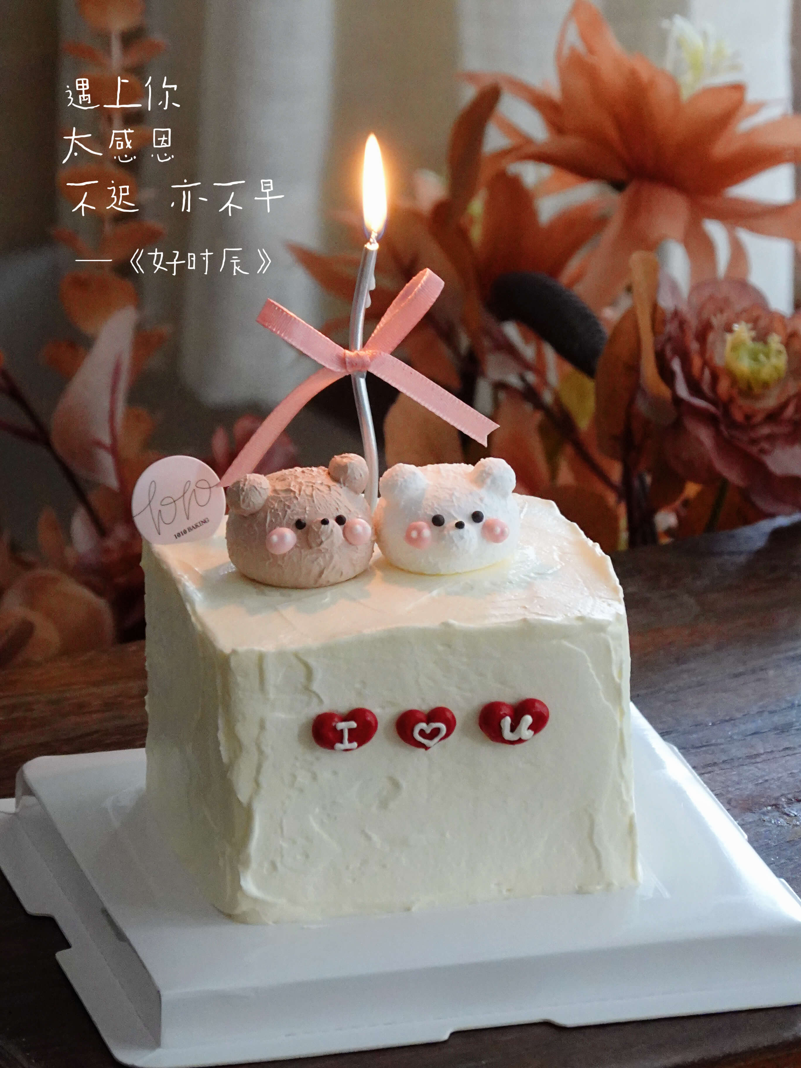 【下架】「遇上你·不迟亦不早」蛋白mini熊·纪念日·100%动物奶油(附图4寸正方形·提前6小时预订)
