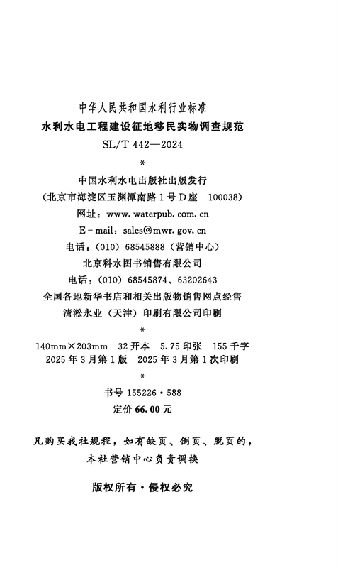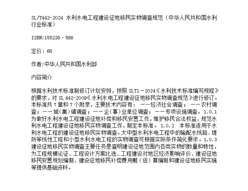 SL/T442-2024水利水电工程建设征地移民实物调查规范(中华人民共和国水利行业标准)