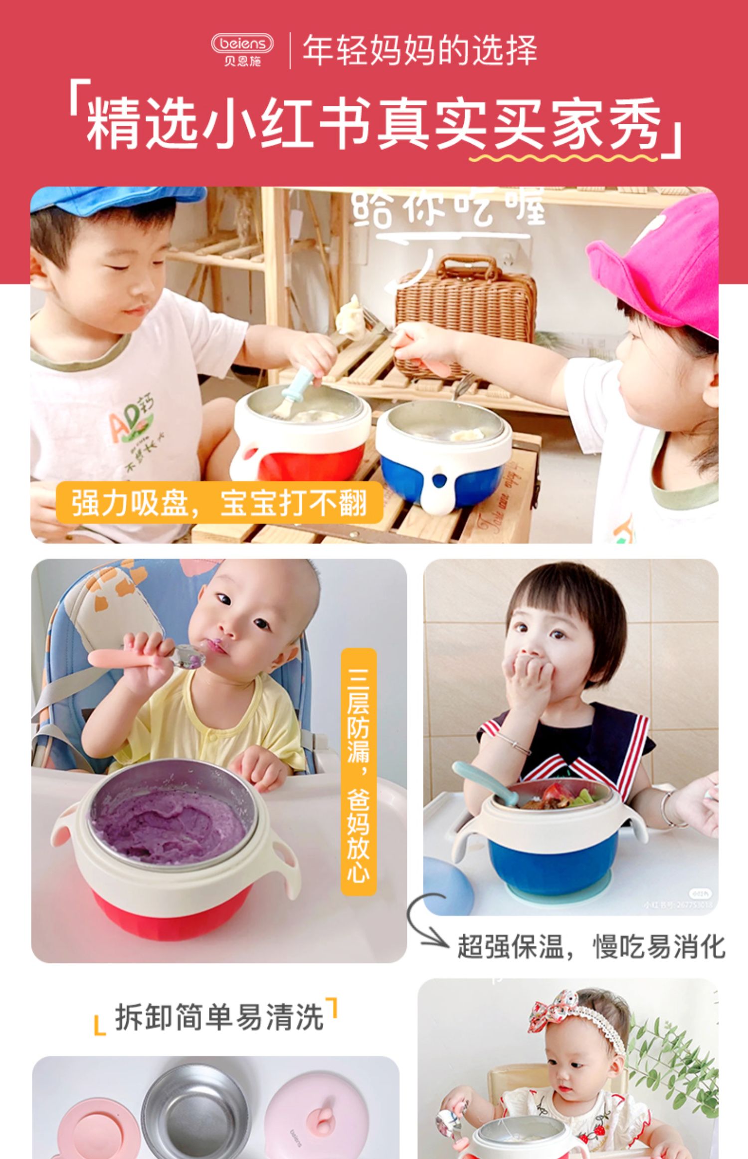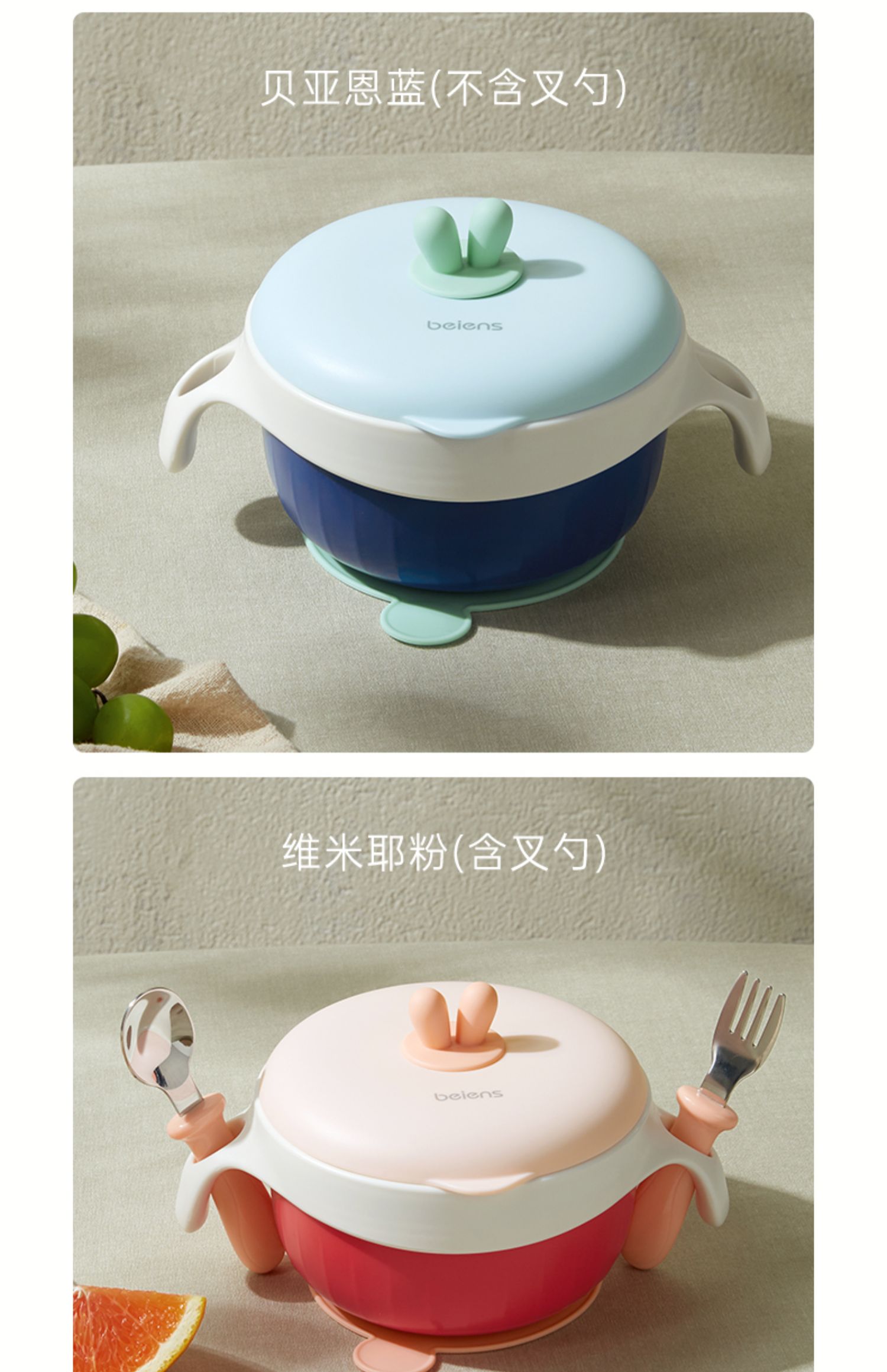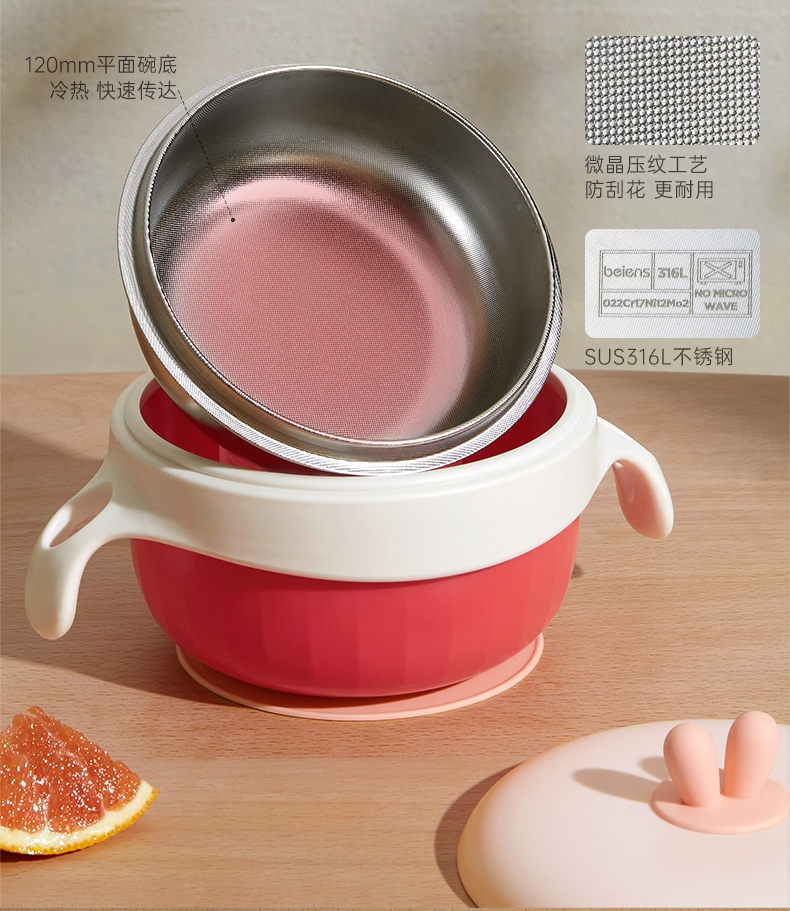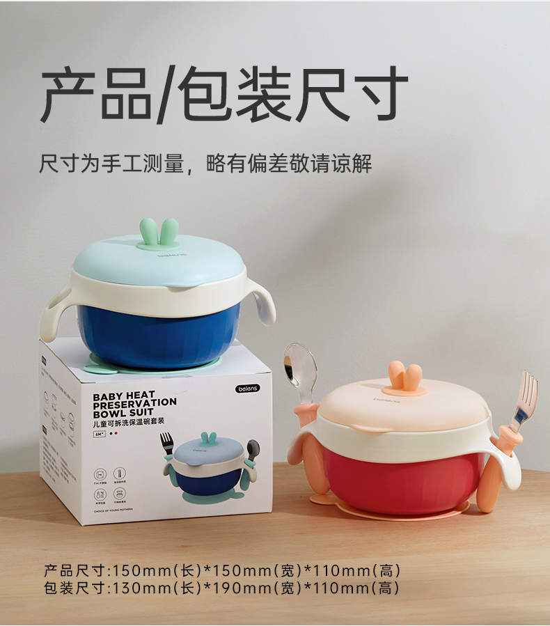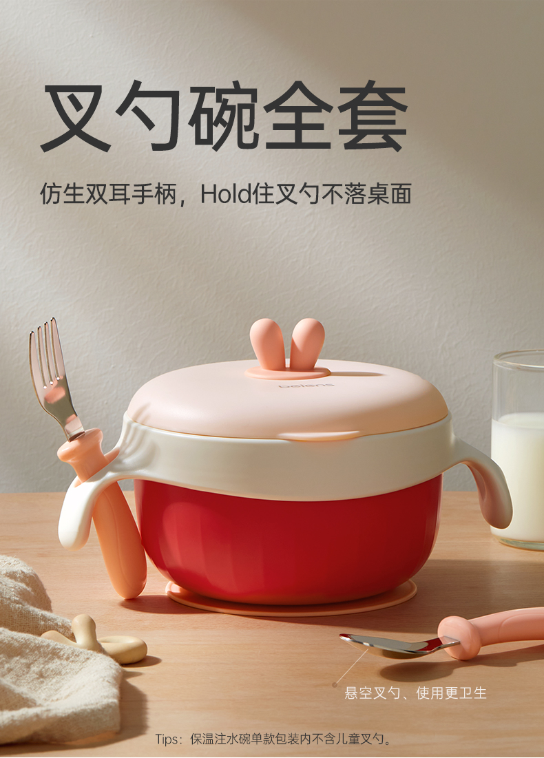 贝恩施儿童注水碗保温碗可拆卸婴幼儿辅食碗吸盘碗防摔防烫餐具