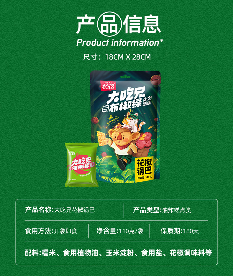 大吃兄 糯米花椒锅巴 110g*3袋 椒麻过瘾 酥脆可口 72小时发货
