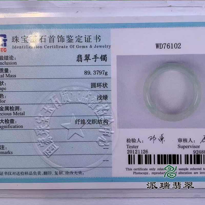 派瑞翡翠 翡翠手镯 糯种 绿色