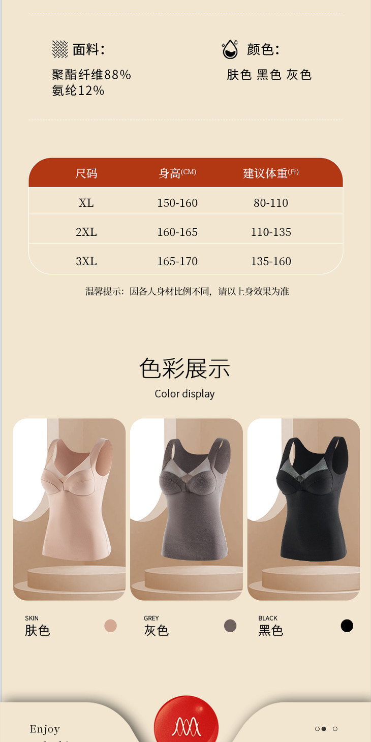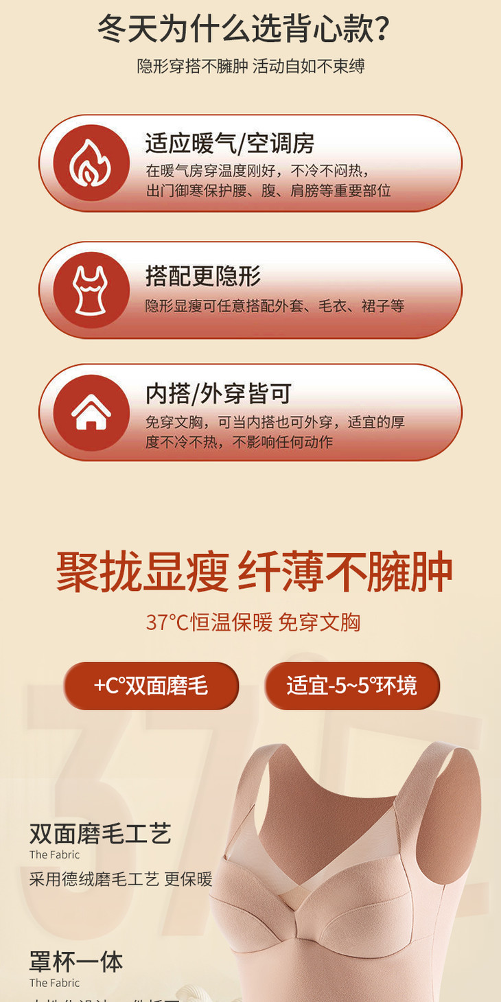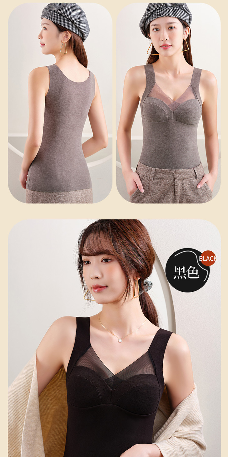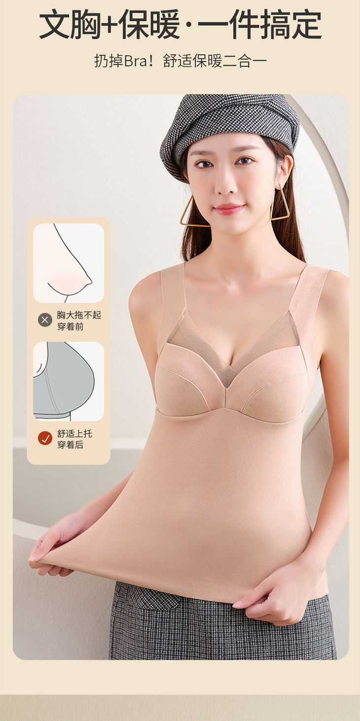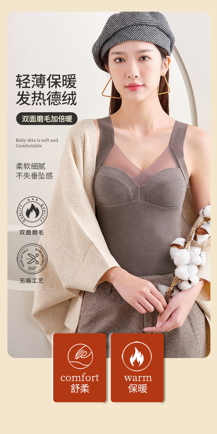 【寒冬也要做‘减法’ 37℃恒温 罩杯一体发热背心】秋冬无痕发热徳绒保暖背心 固定一体胸垫加厚打底保暖内衣女