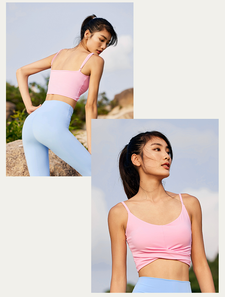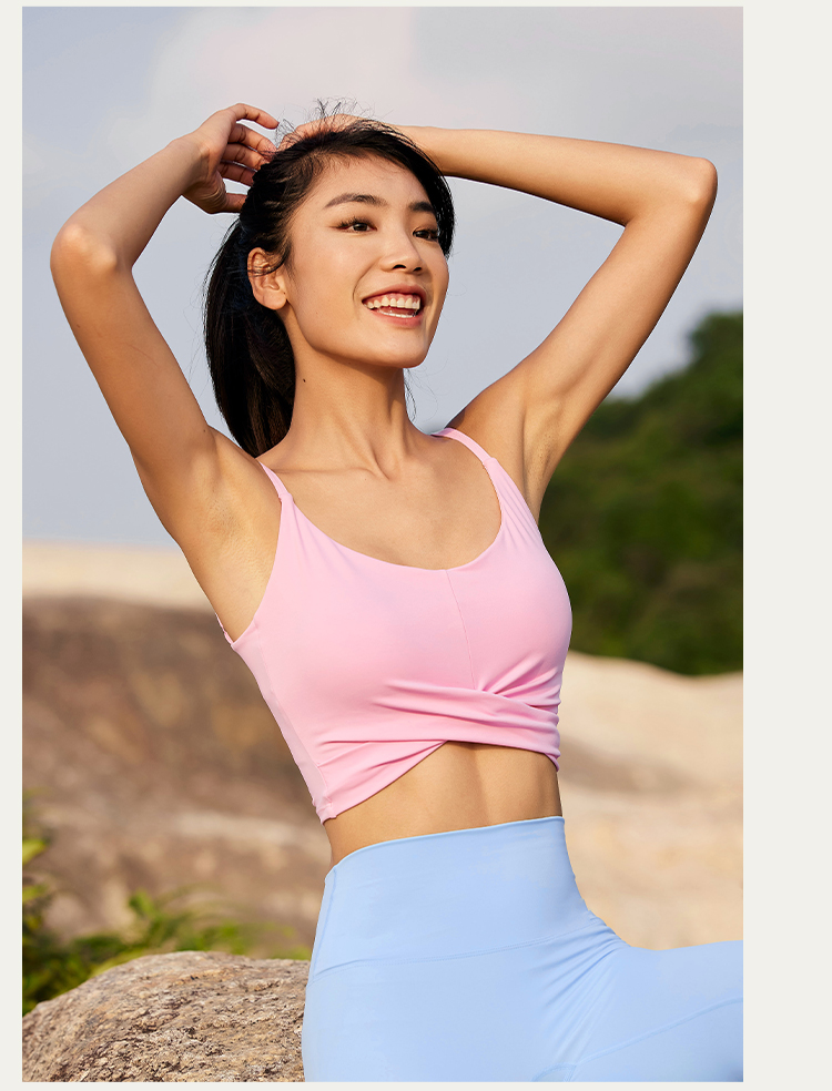 【裸感面料】交叉扭结瑜伽带胸垫运动背心-中低强度