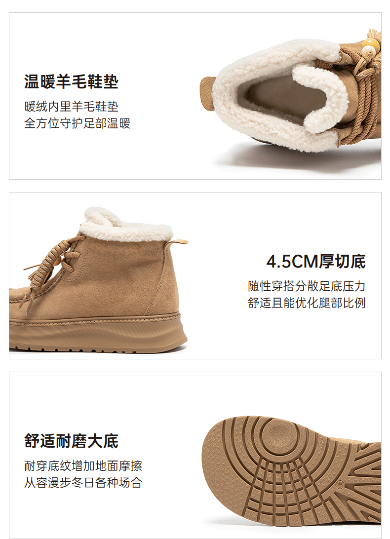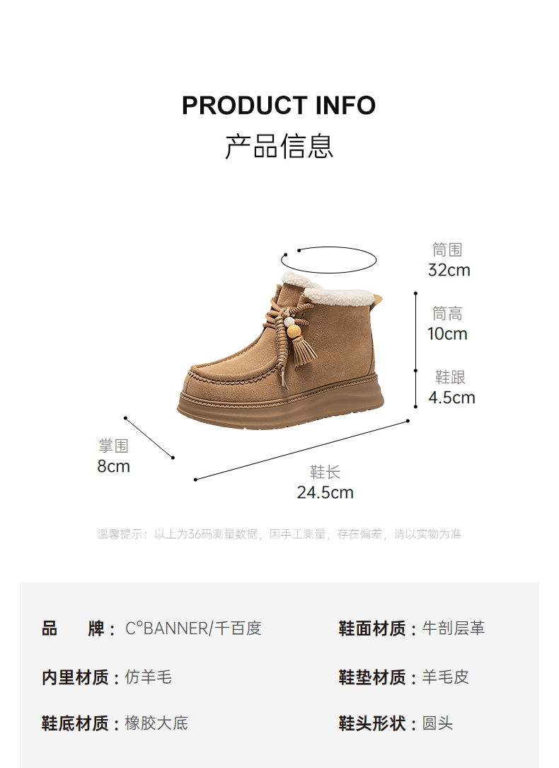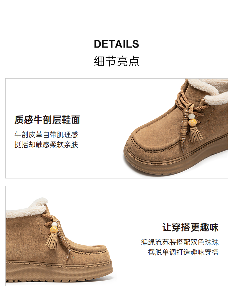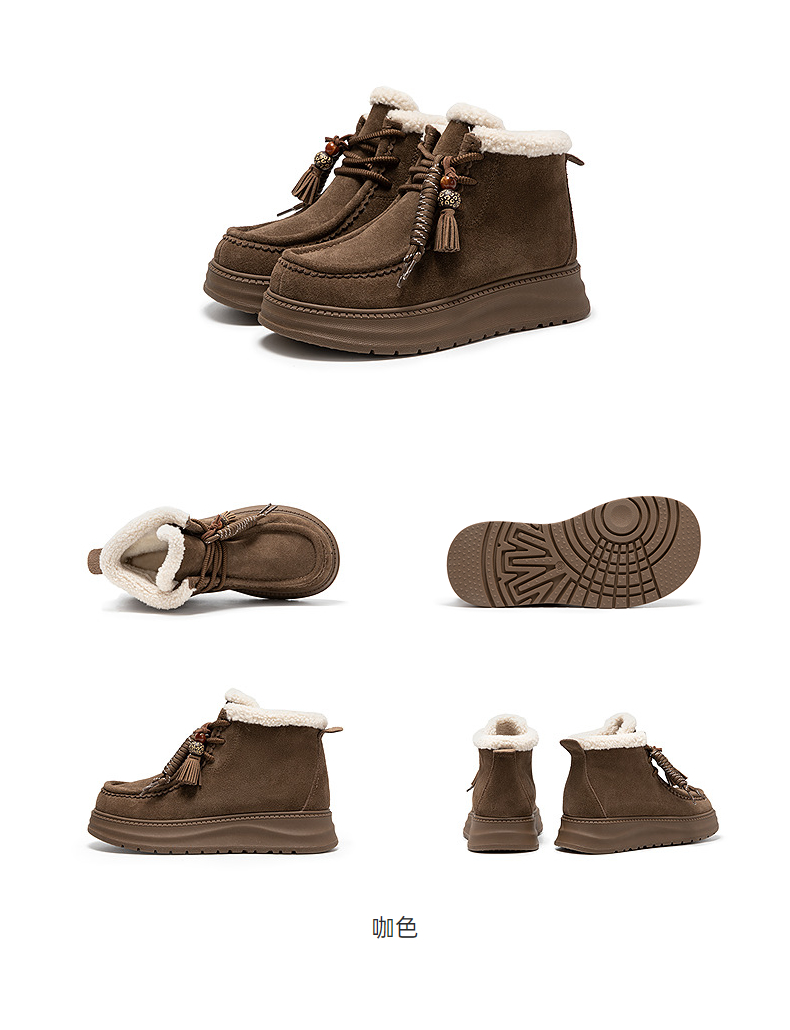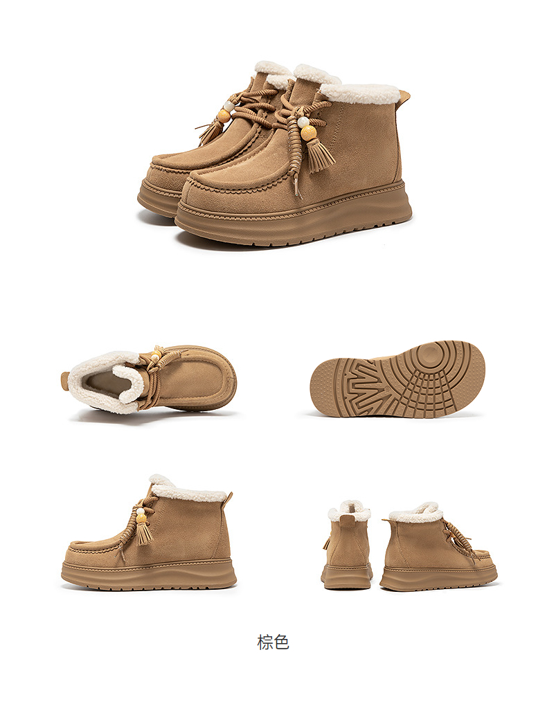 千百度串珠厚底时尚雪地靴女加绒保暖美拉德短靴棉鞋A25781935