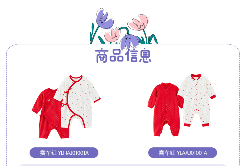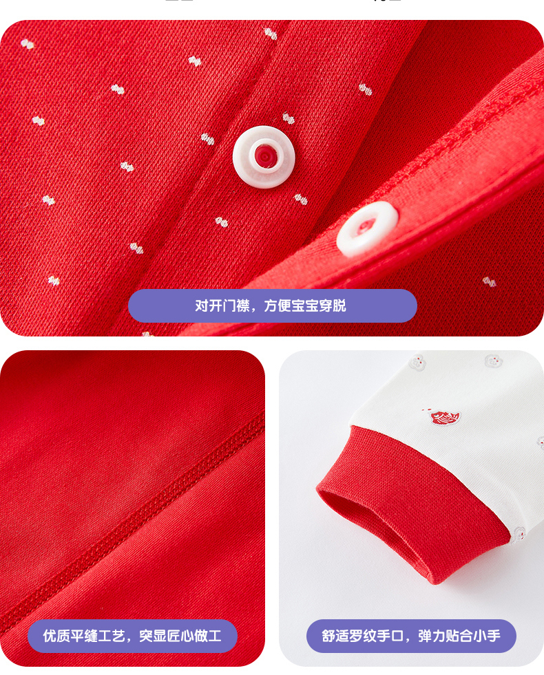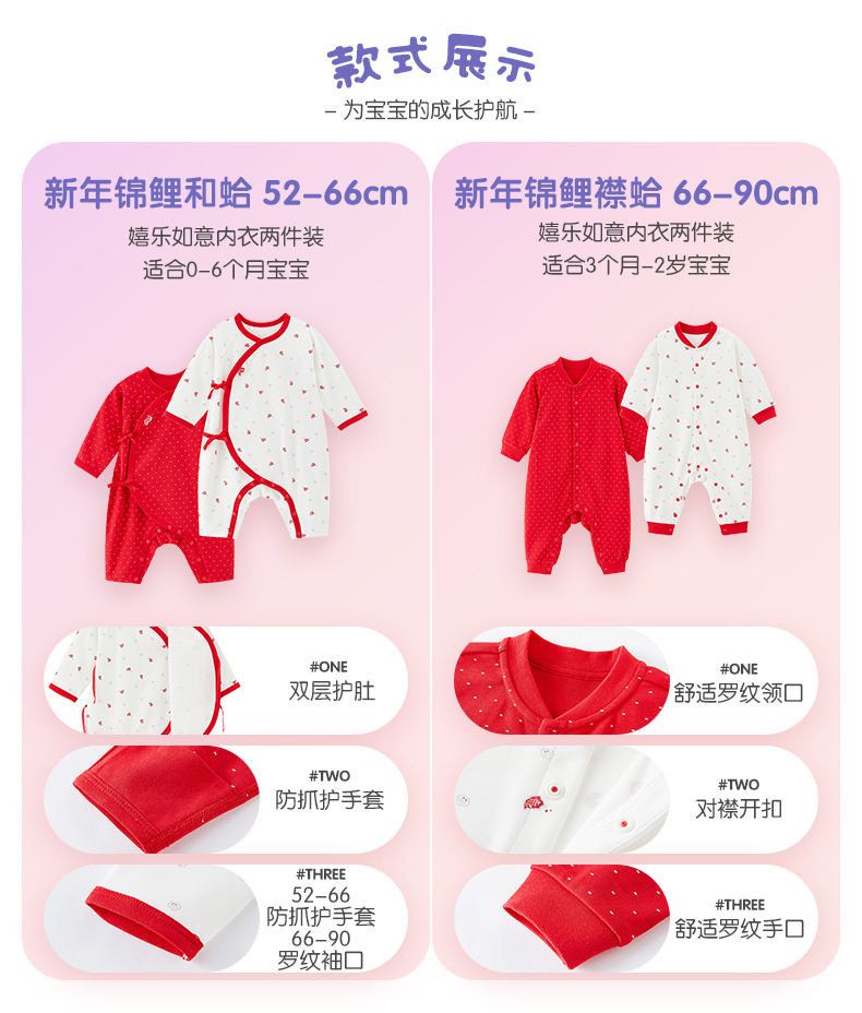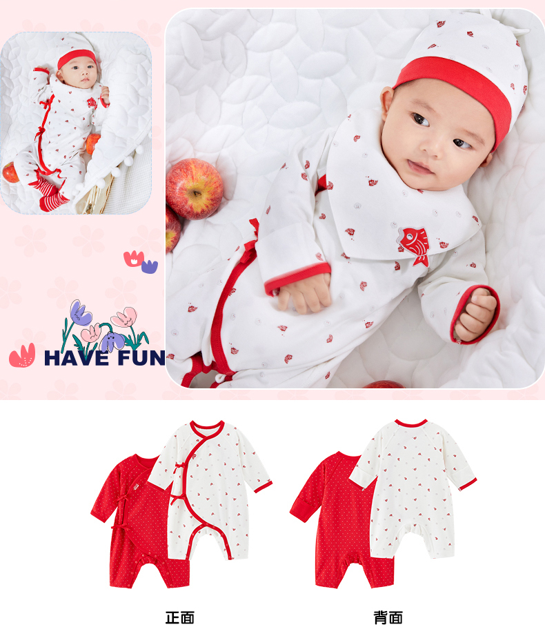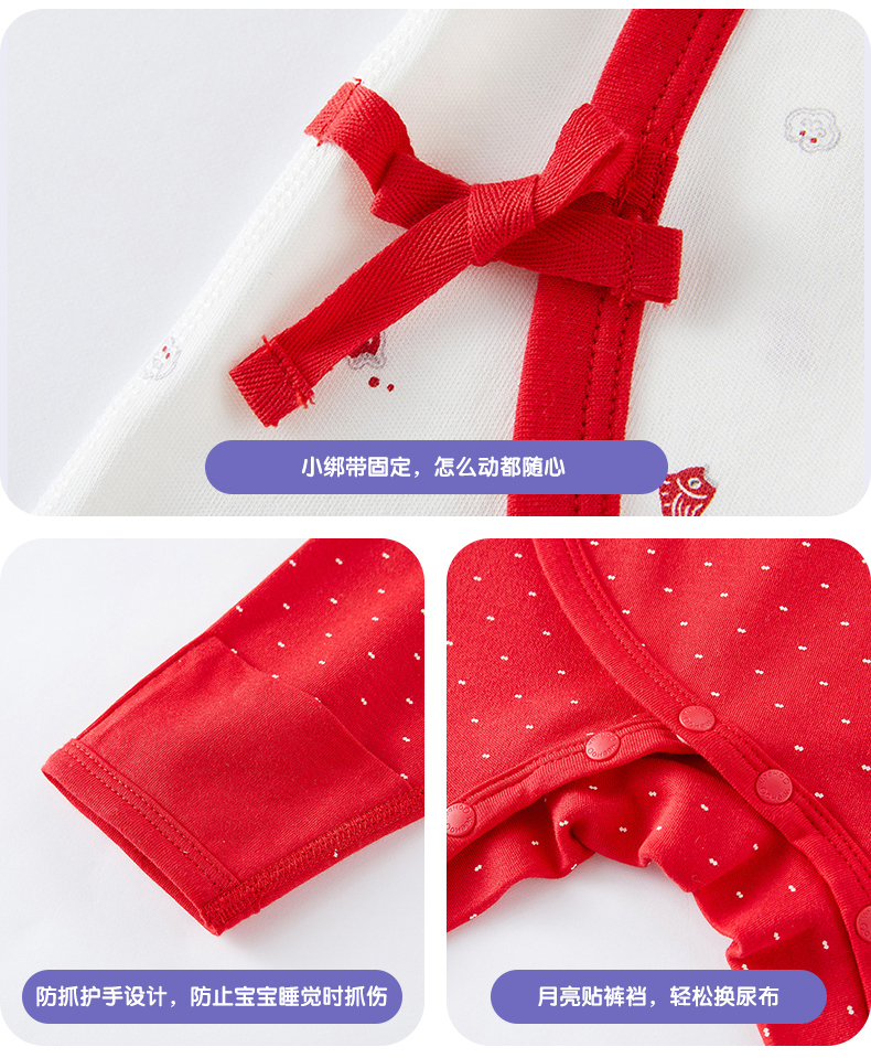 英氏新生婴儿儿连体哈衣宝宝纯棉系带和蛤新年2件装YLHAJ01001A01