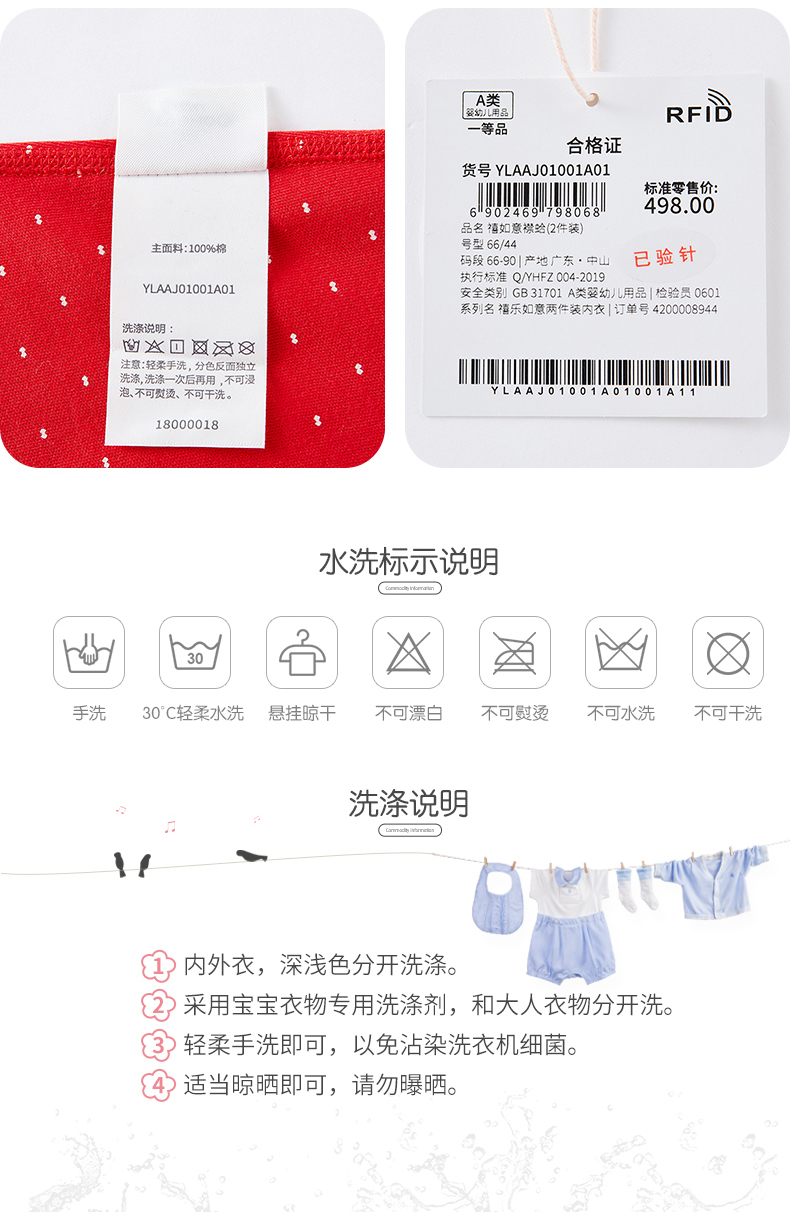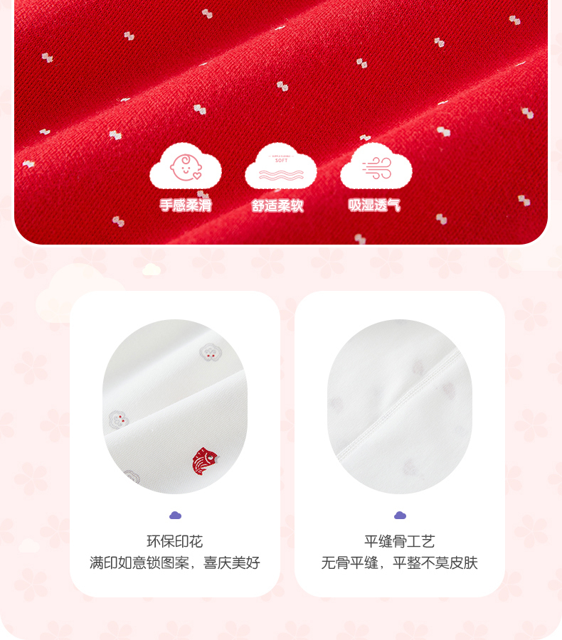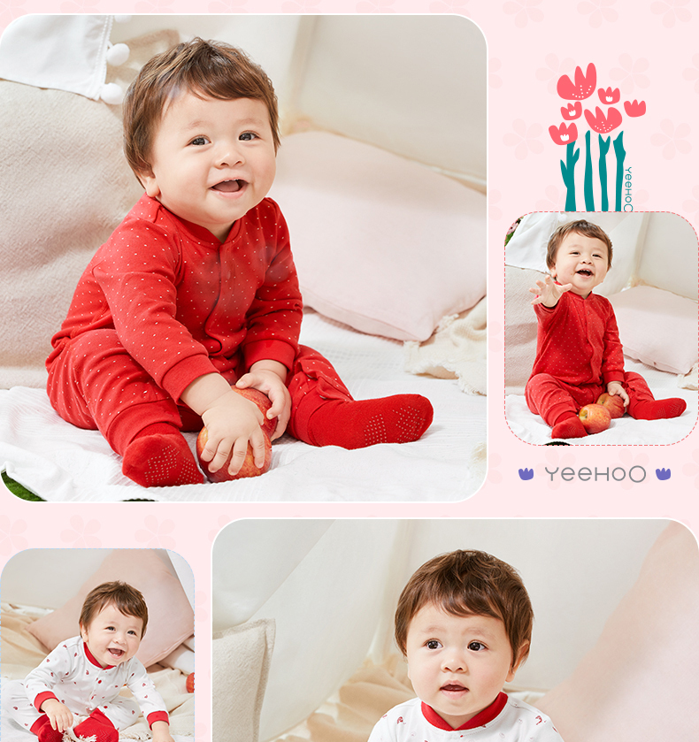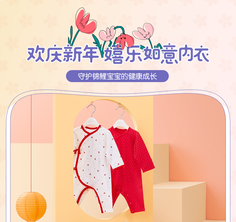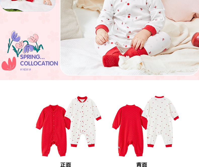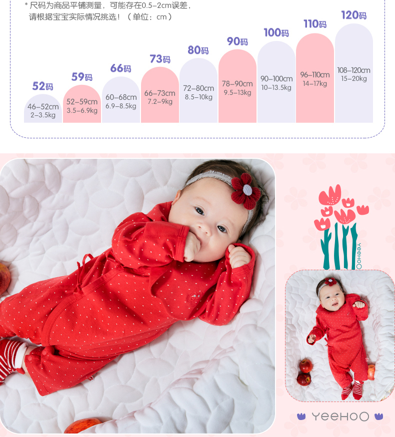 英氏新生婴儿儿连体哈衣宝宝纯棉系带和蛤新年2件装YLHAJ01001A01