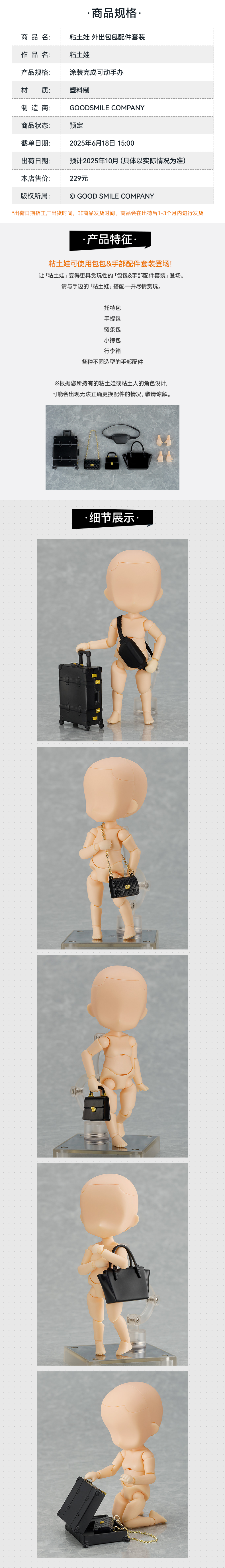 【GSC现货】粘土娃 外出包包配件套装 手办模玩