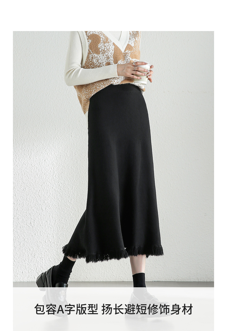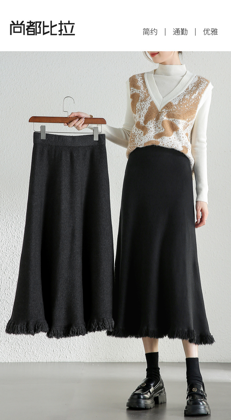【内购】时尚都市白领舒适通勤时尚松紧腰毛边下摆点缀 A字半身裙-W44Q56679