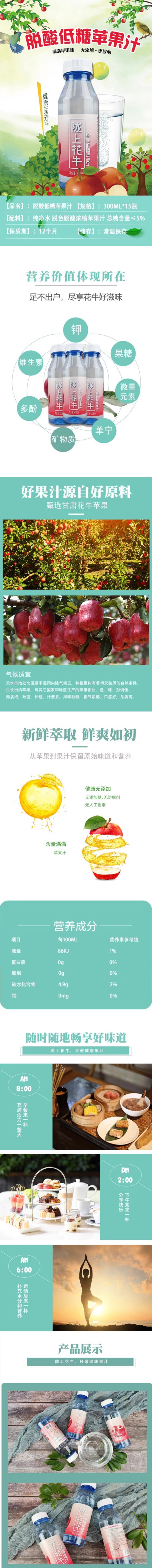 陇上花牛 脱酸低糖苹果汁 300ml/瓶
