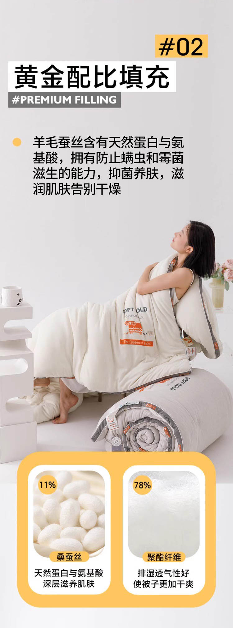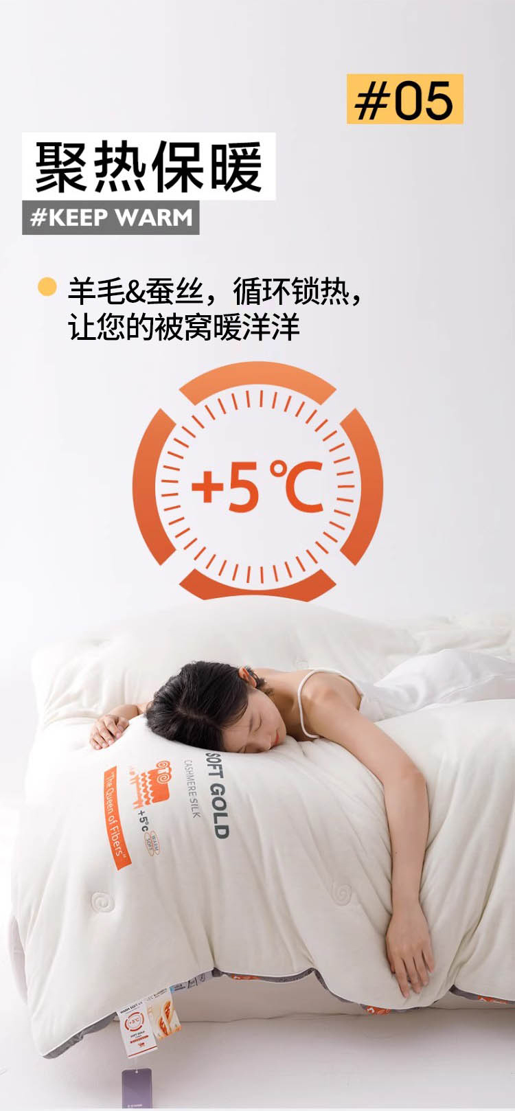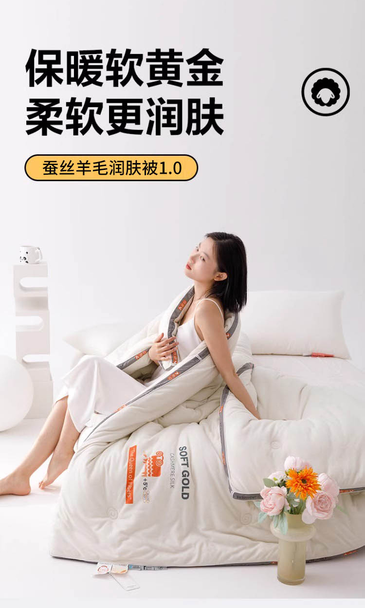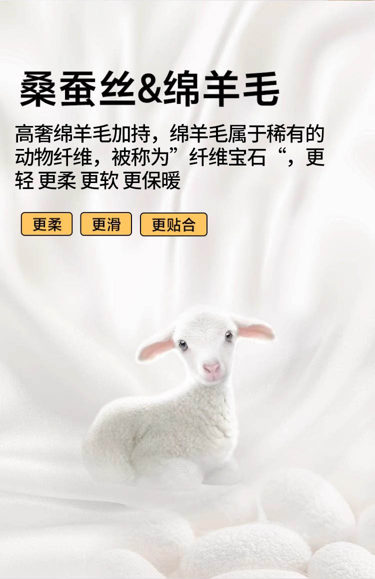 顶柔蚕丝羊毛能量被,面料自发热牢锁温,软糯如云,肤感一绝!