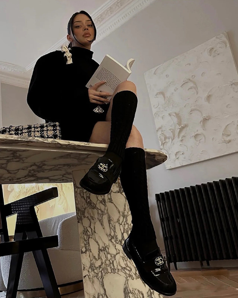 现货 THS 6.29-限时 香家 女士 厚底乐福鞋 双C水钻点缀乐福鞋 2色 BZ1185