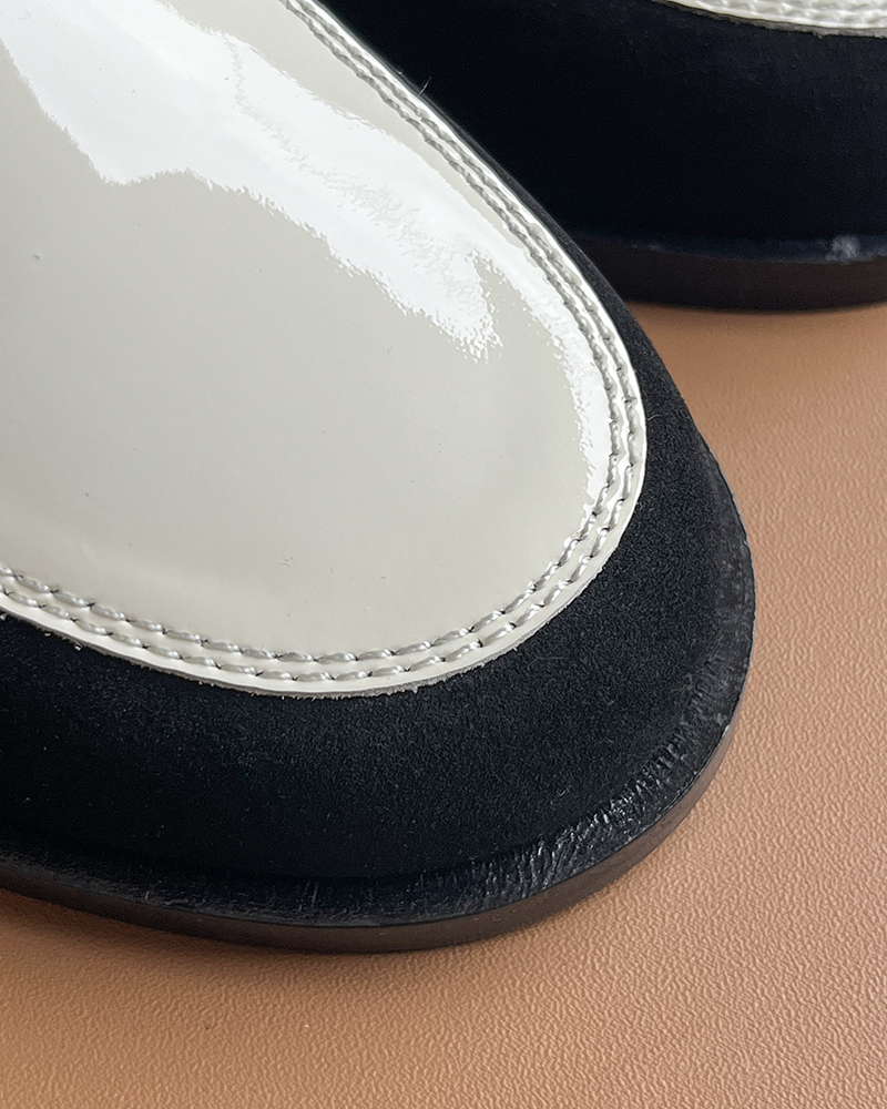 | 材质 | 鞋面:小牛漆皮/反绒 内里垫脚:羊皮 大底:真皮组合大底 |