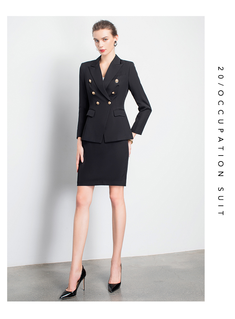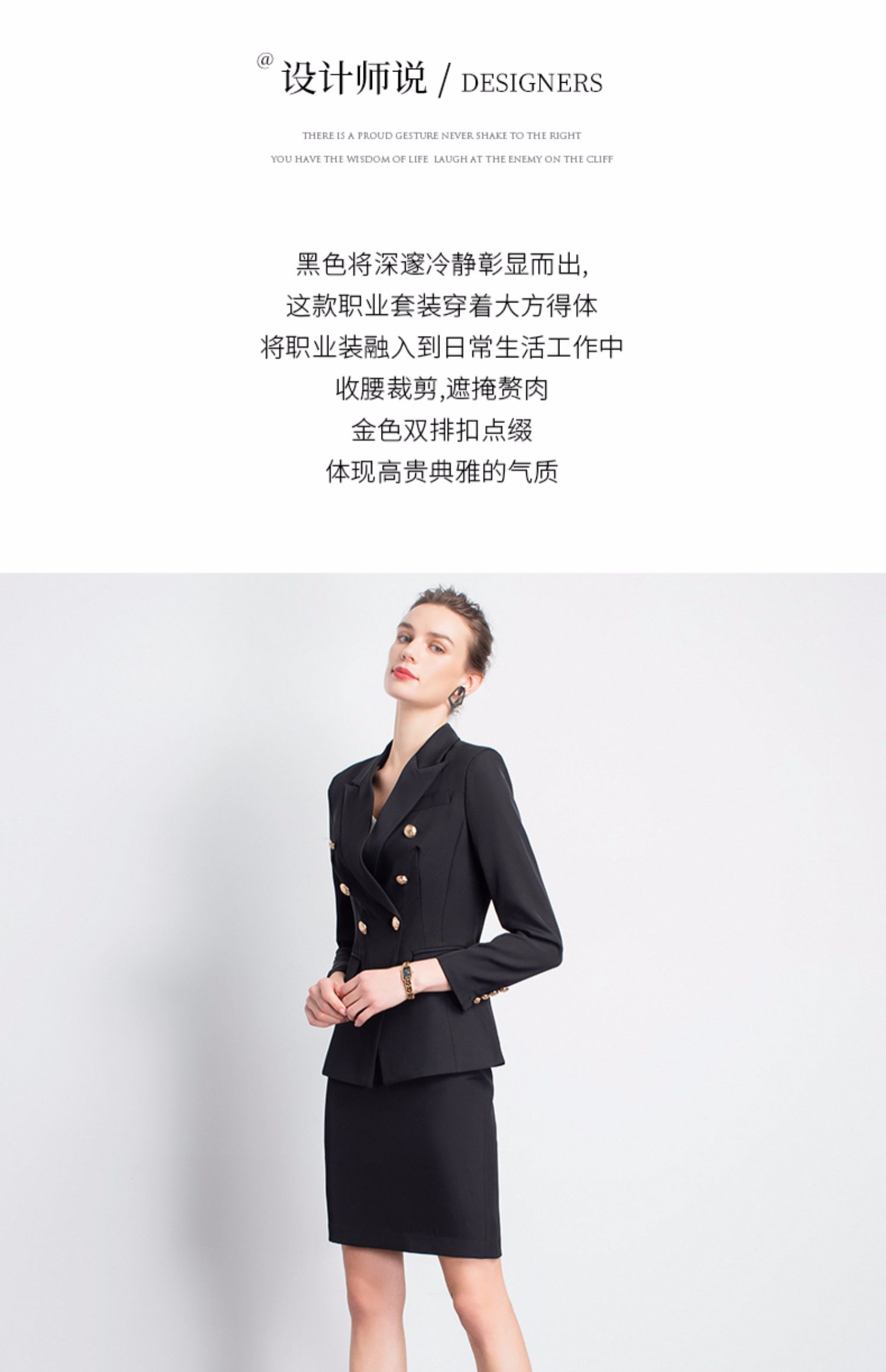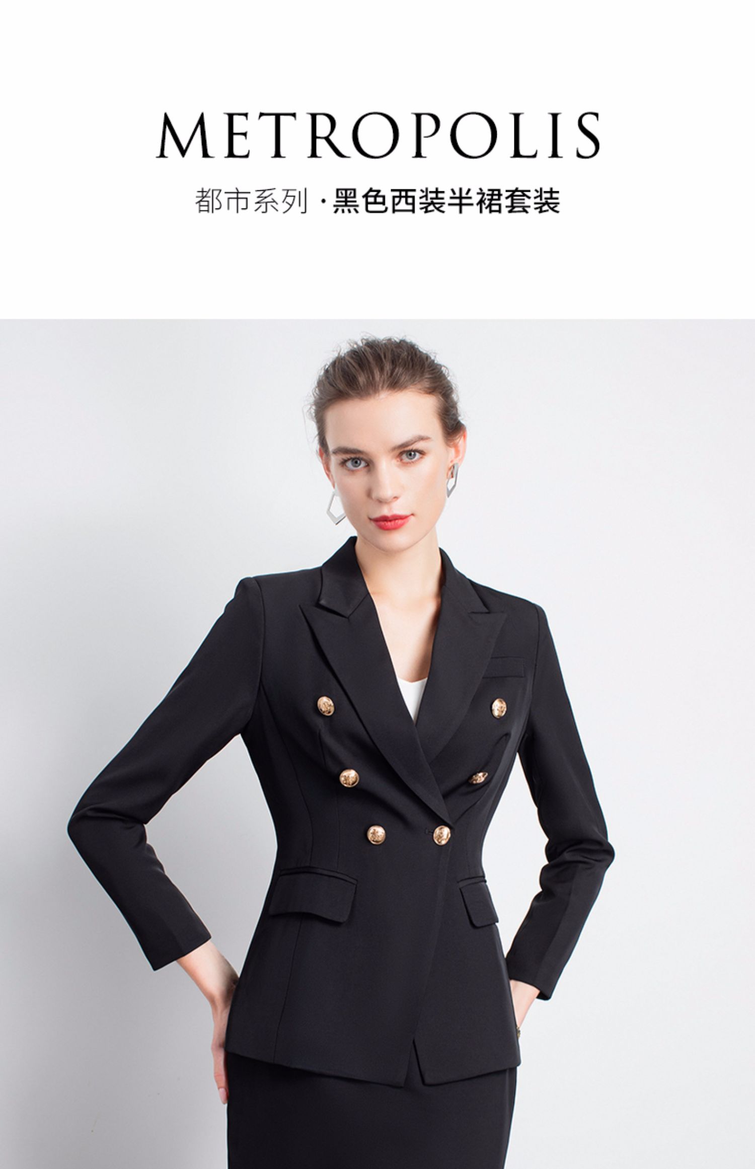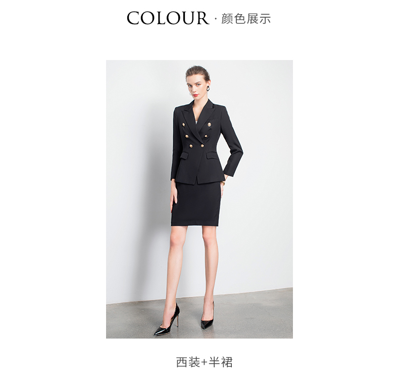 IWY/黑色职业女裙套装干练制服时装款双排扣气质女式港味精品CS901