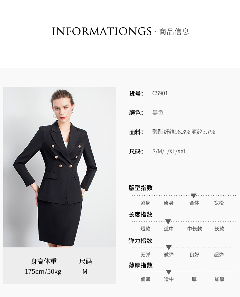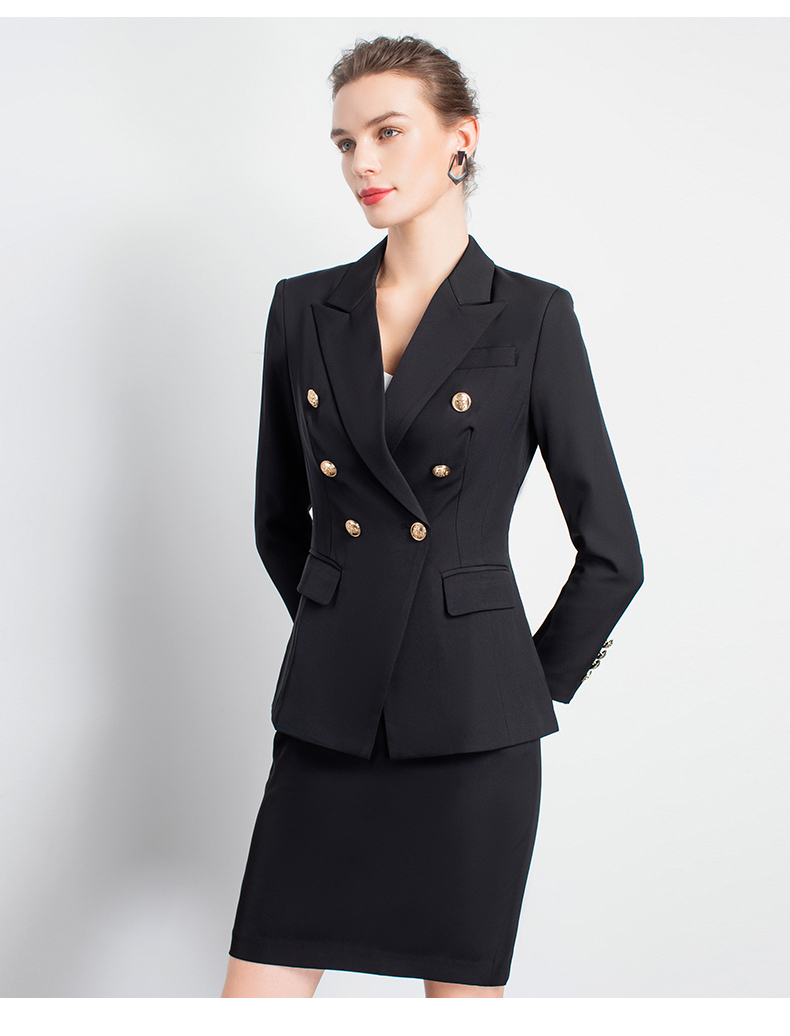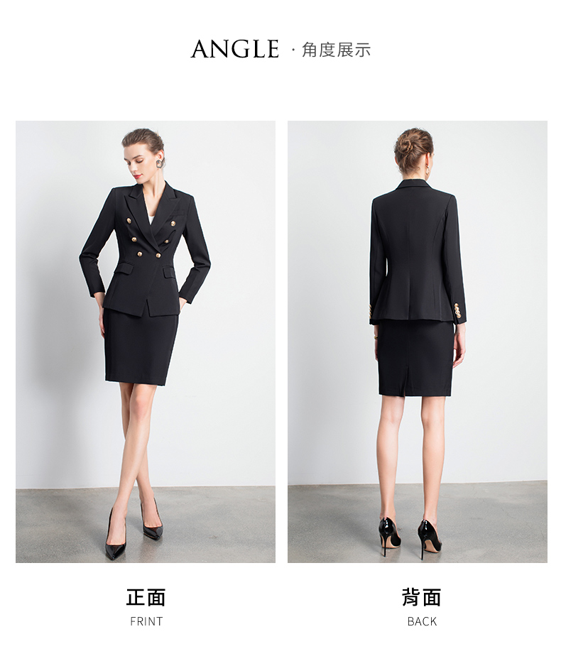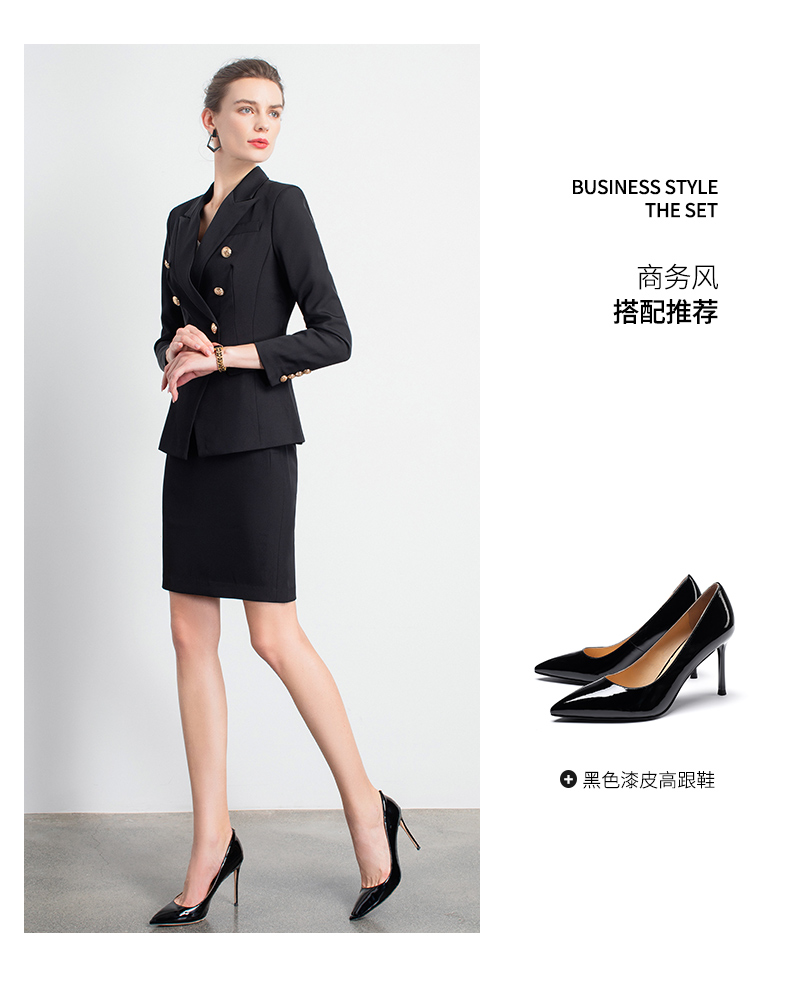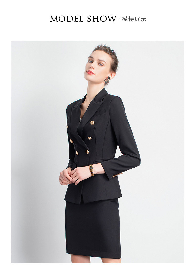 IWY/黑色职业女裙套装干练制服时装款双排扣气质女式港味精品CS901