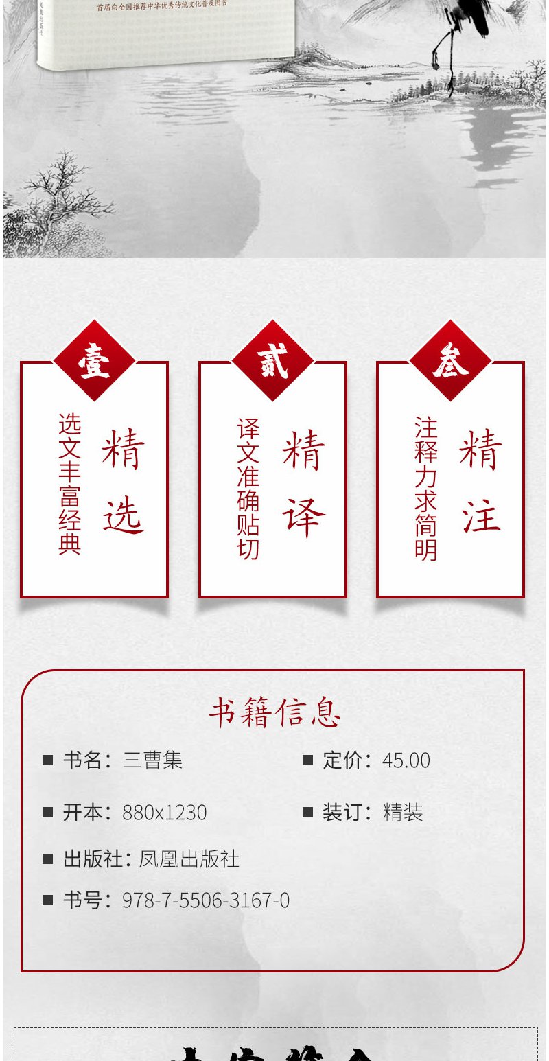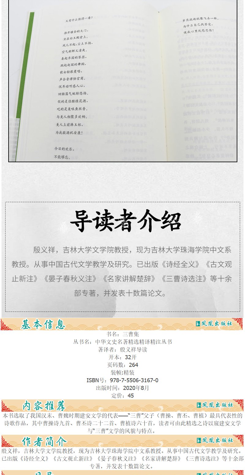三曹集 中华文史名著精选精译精注丛书 32开精装 “三曹”父子(曹操 曹丕 曹植)曹操诗九首 曹丕诗二十二首 曹植诗六十首三曹诗集