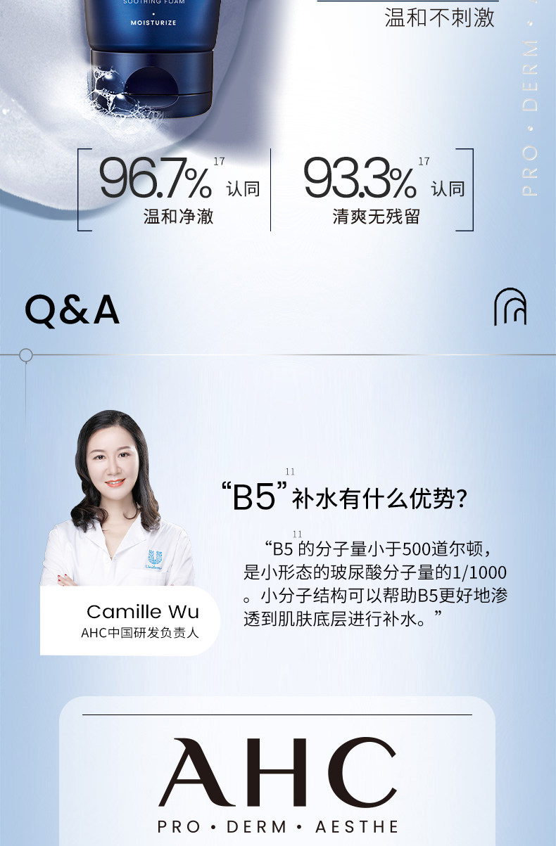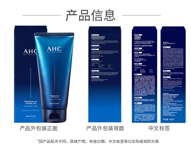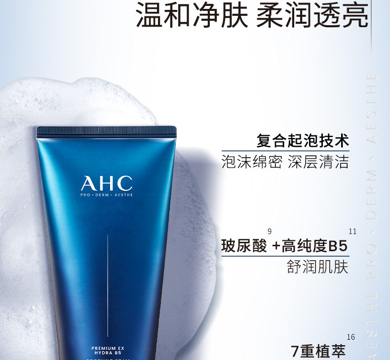 AHC 韩国B5玻尿酸洗面奶 泡沫洁面清洁保湿清爽温和不刺激女