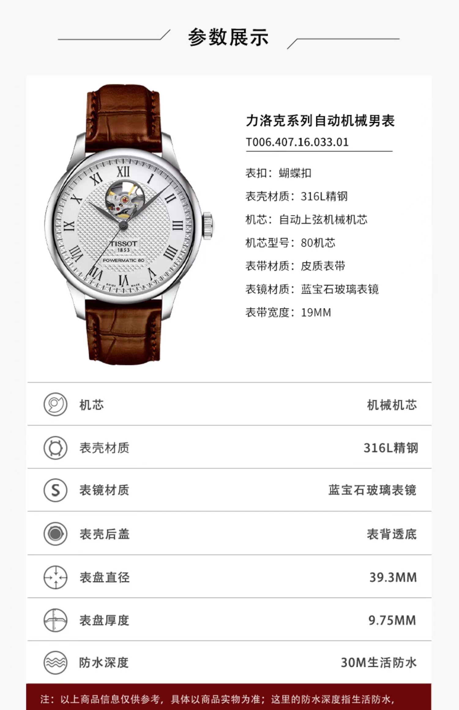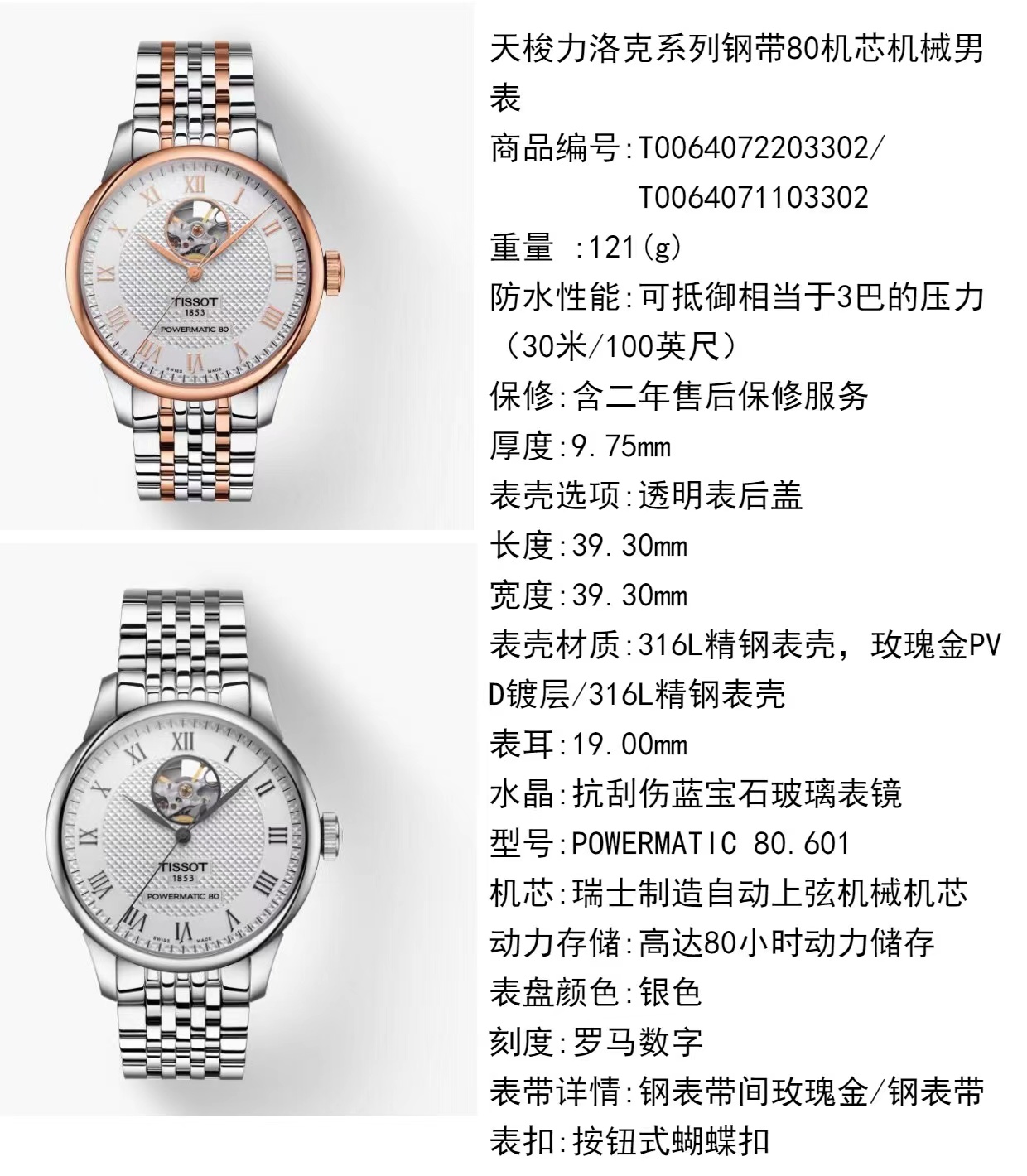 1F 【天梭】TISSOT新款力洛克镂空机械男款