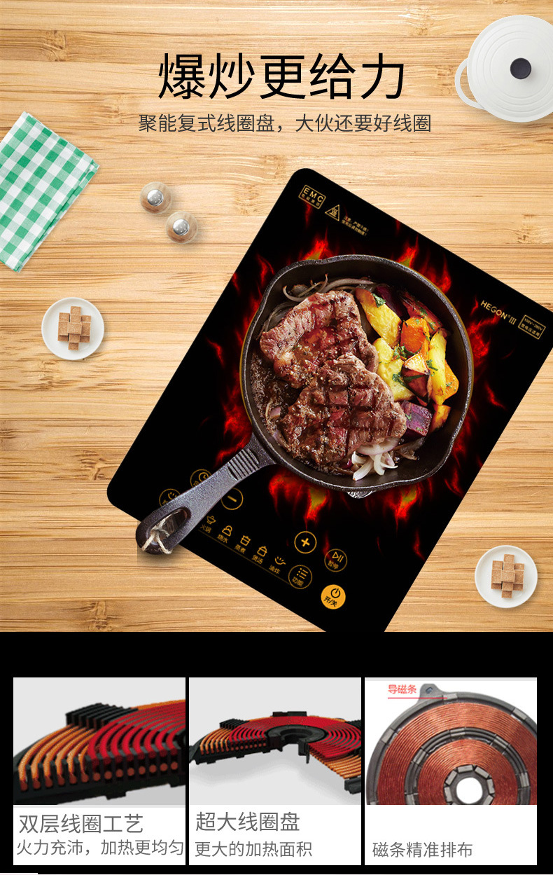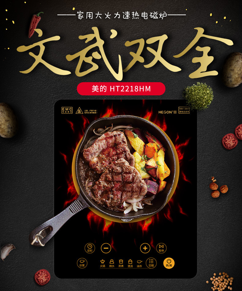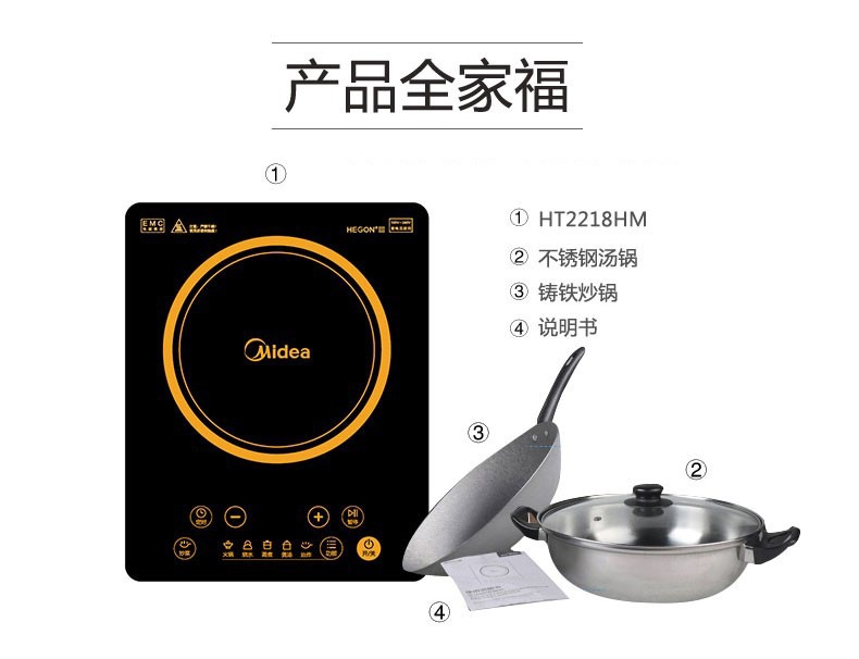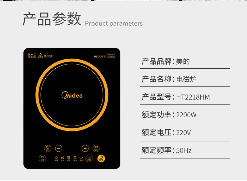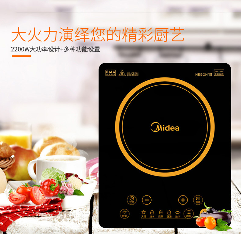 Midea/美的 家用火锅防水触屏按键2200瓦功率炒菜电磁灶 HT2218HM