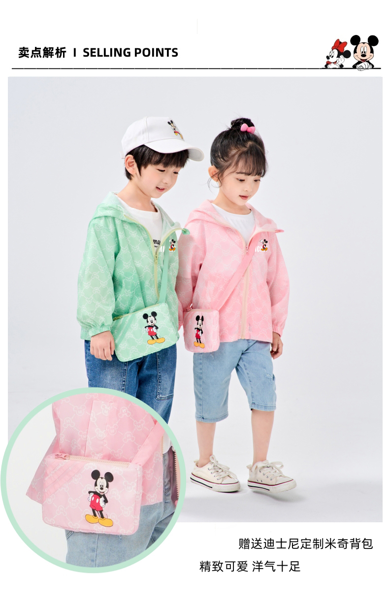 Disney/迪士尼儿童米奇背包轻薄外套男女宝连帽浅秋外套XME2SW340