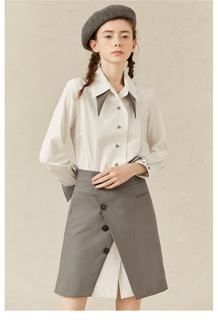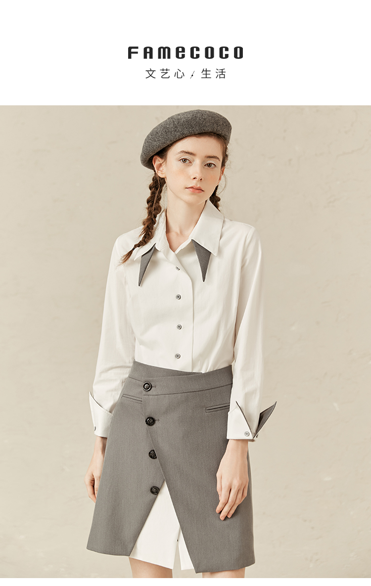 Famecoco范可儿时尚职业套装裙女春款白色优雅两件套F221EA005