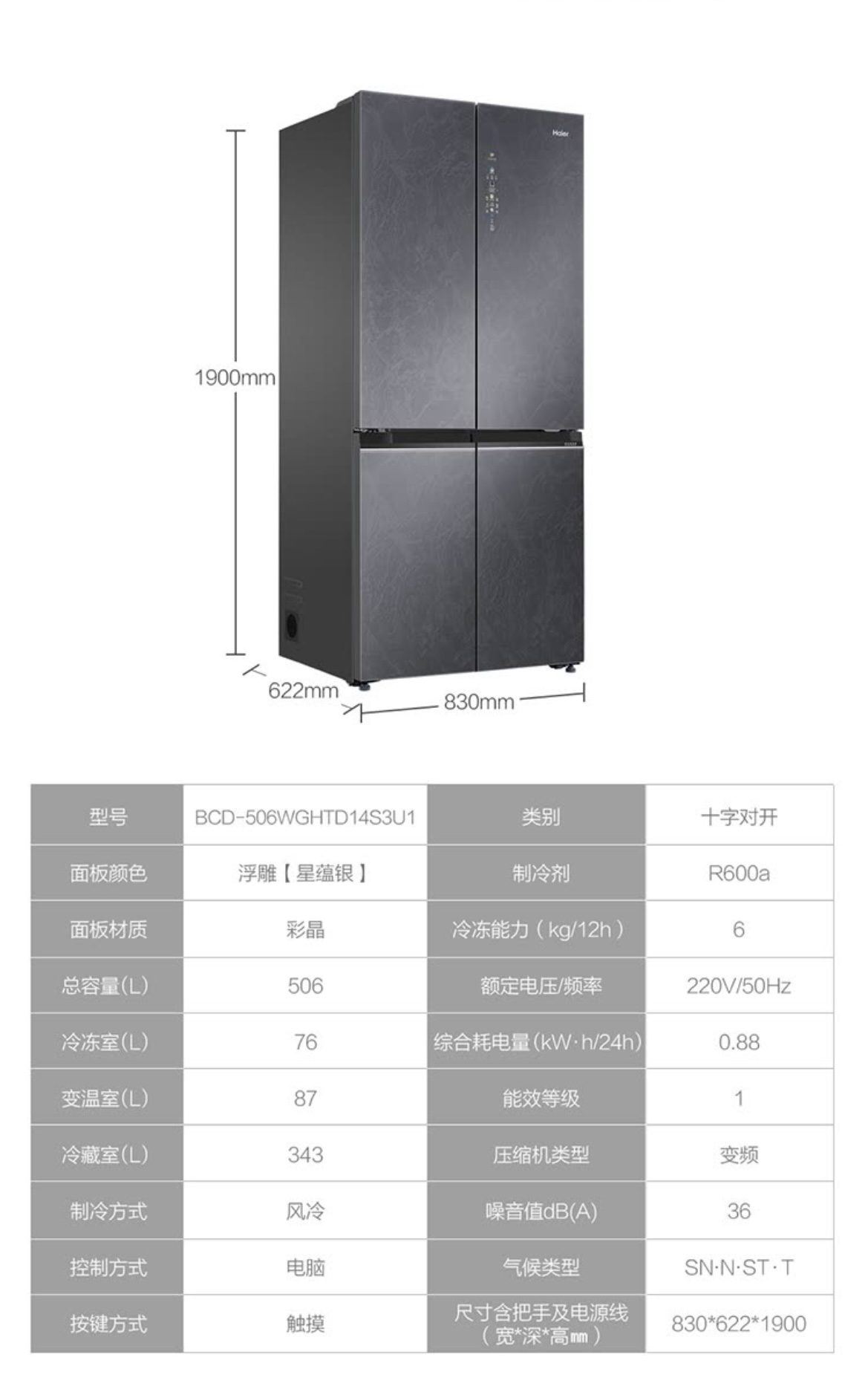 海尔(Haier)冰箱BCD-506WGHTD14S3U1