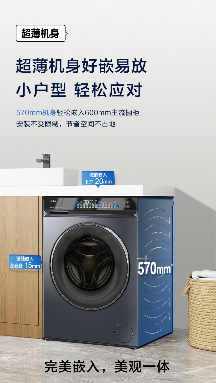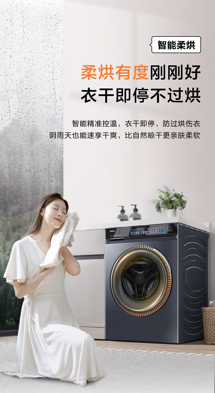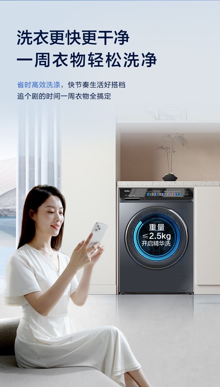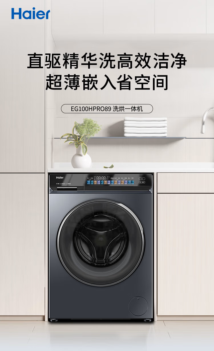 海尔(Haier)全自动滚筒洗烘一体机 10公斤大容量超薄家用洗衣机带烘干直驱变频HPRO89