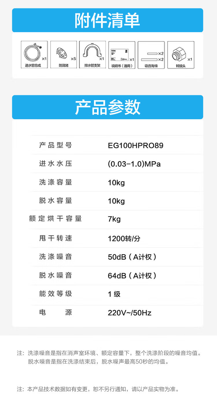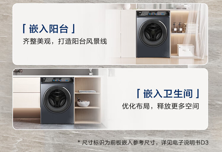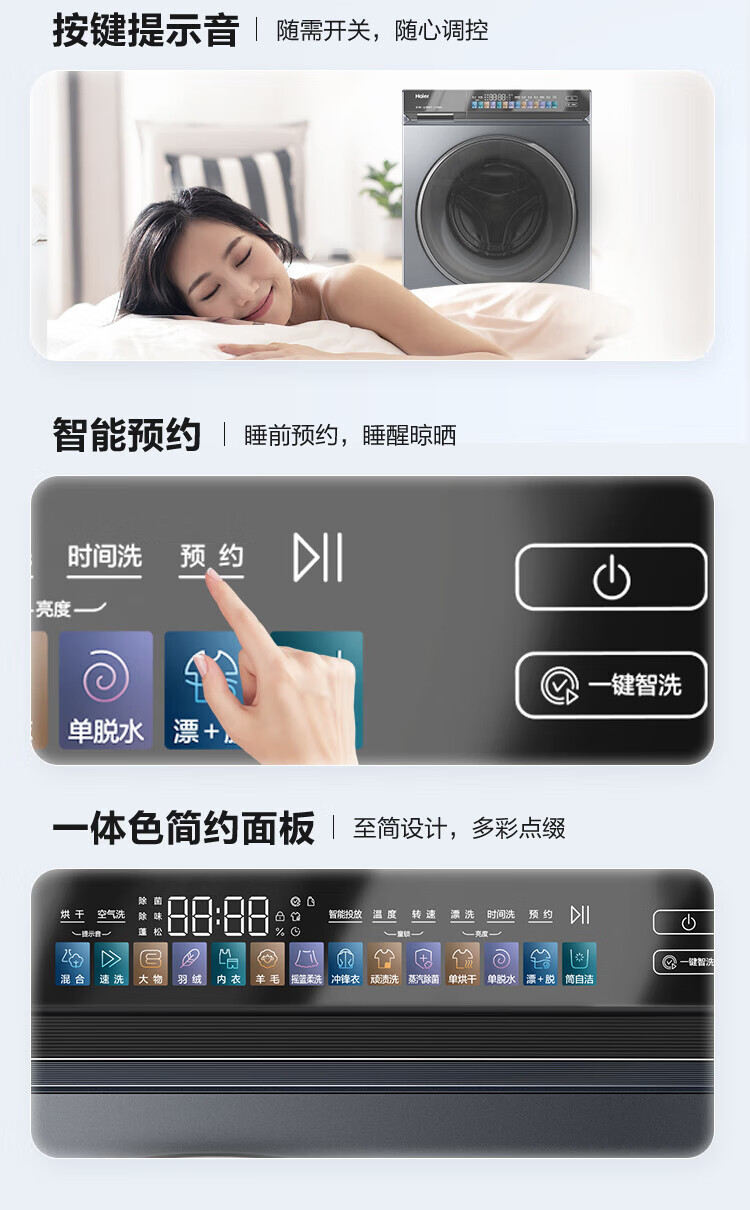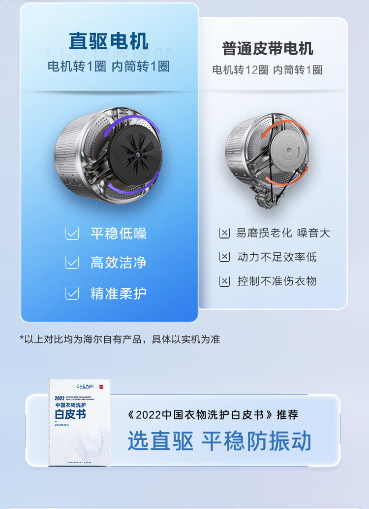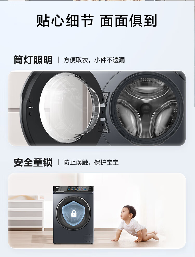 海尔(Haier)全自动滚筒洗烘一体机 10公斤大容量超薄家用洗衣机带烘干直驱变频HPRO89