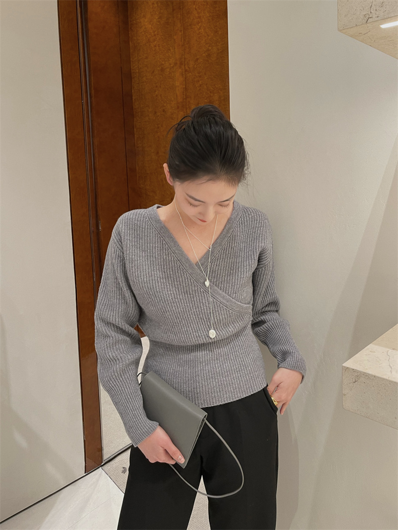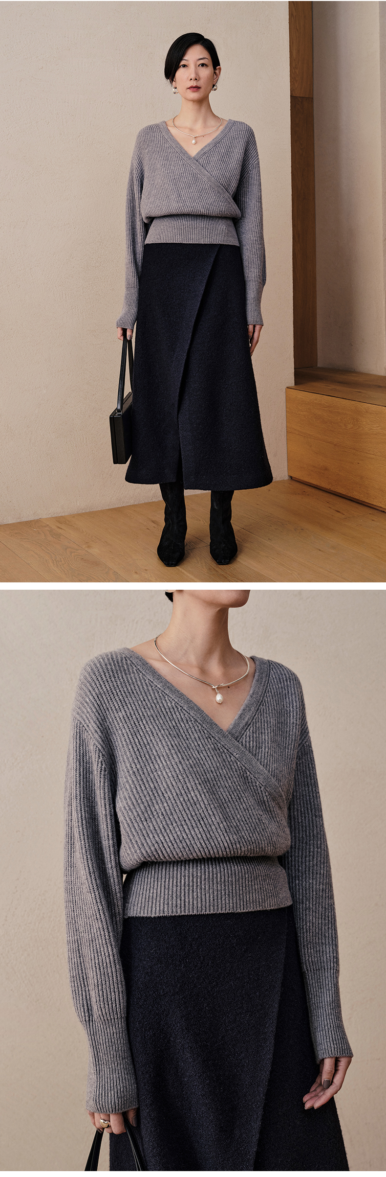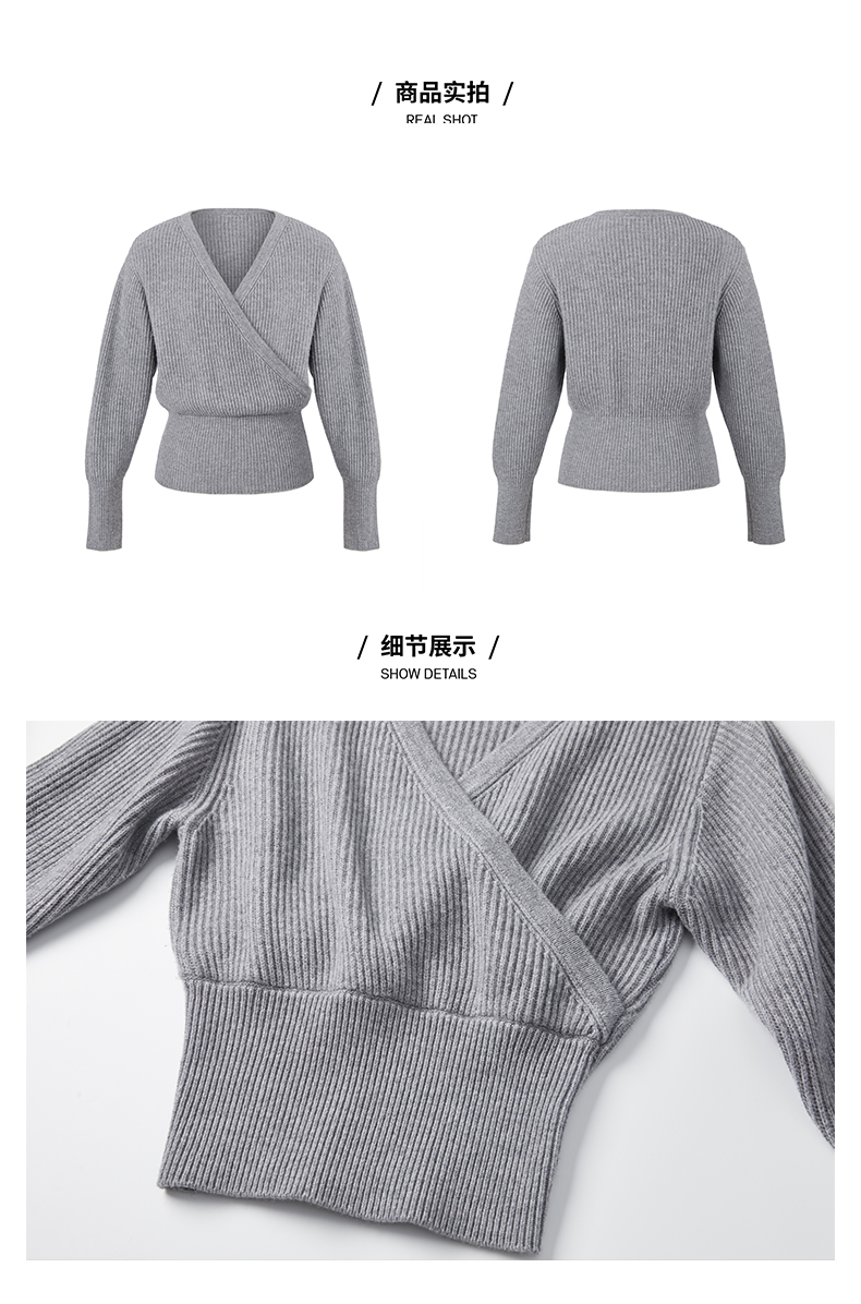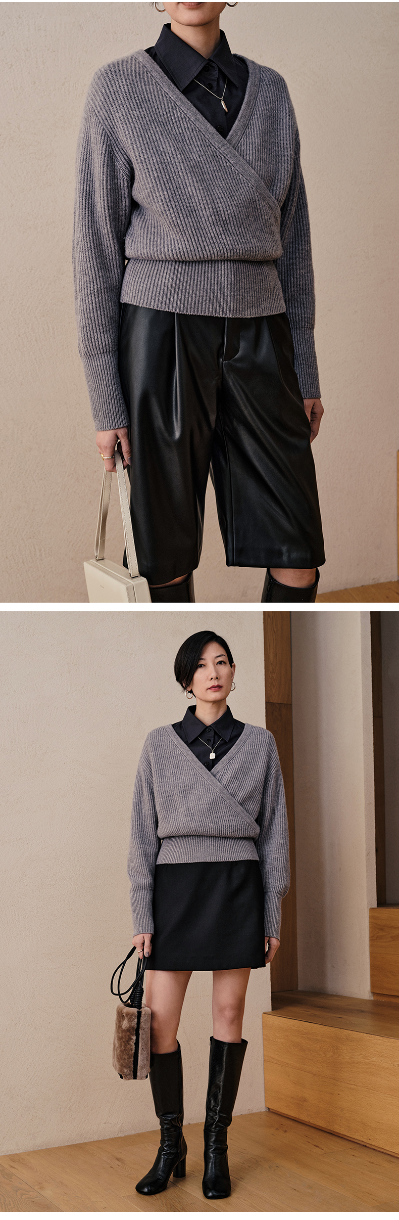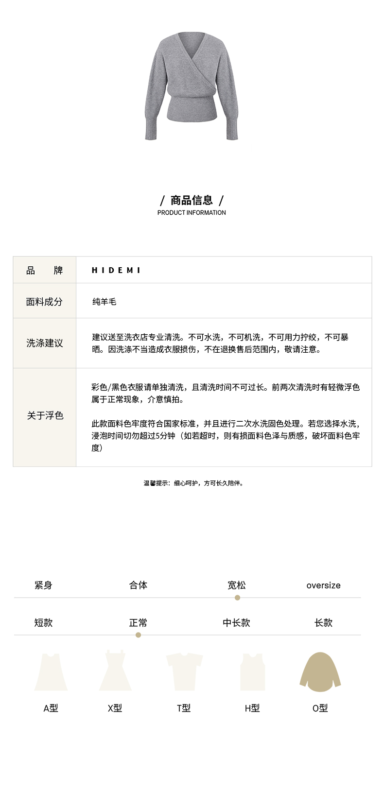 HIDEMI 美利奴羊毛V型叠领短款设计感毛衣