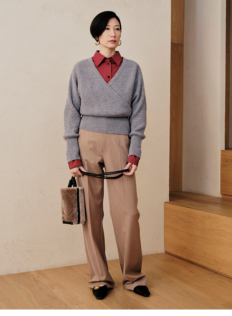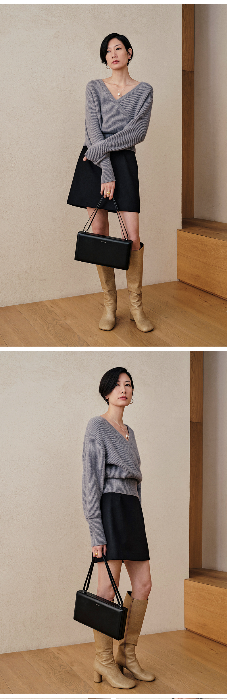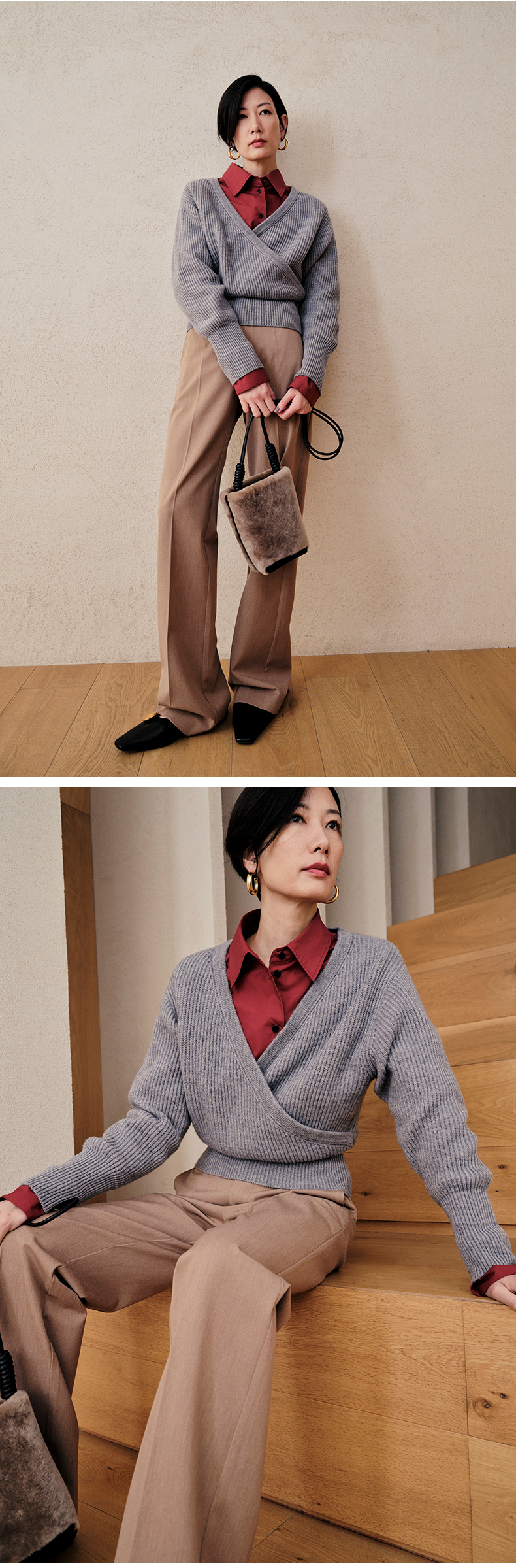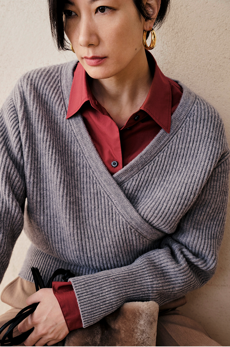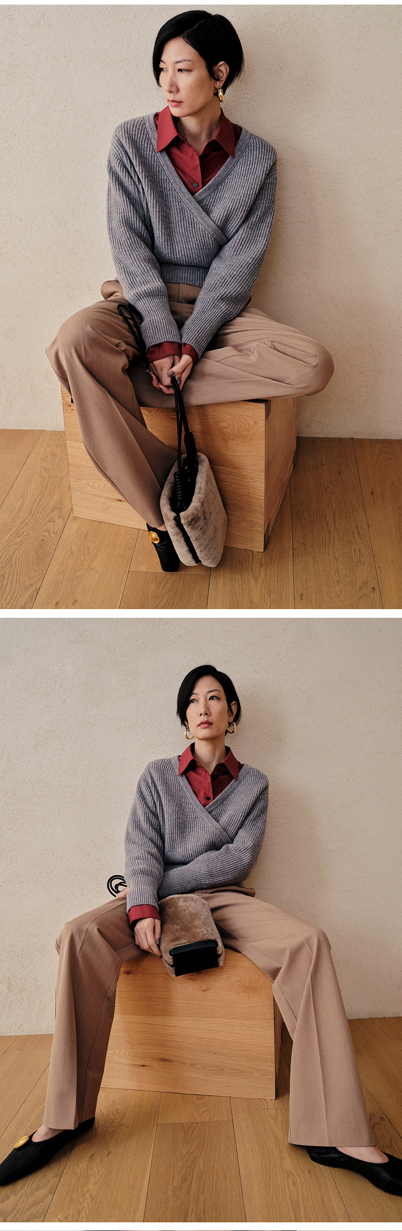 HIDEMI 美利奴羊毛V型叠领短款设计感毛衣