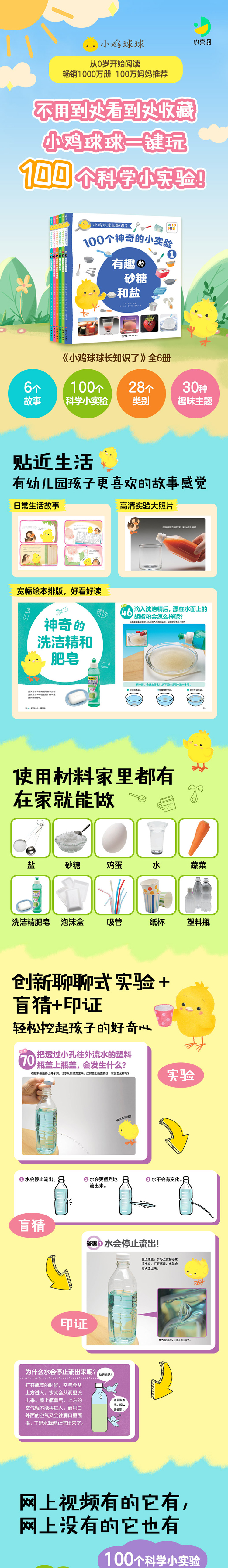 【反斗城专属】小鸡球球长知识了全6册点读版3到6岁儿童入门级科普实验绘本100个神奇的科学小实验用实验敲开科学的大门