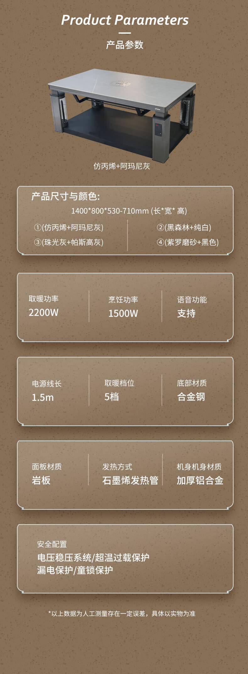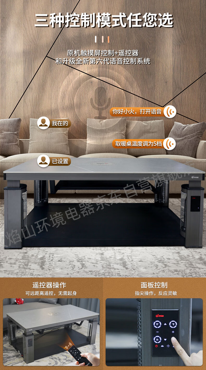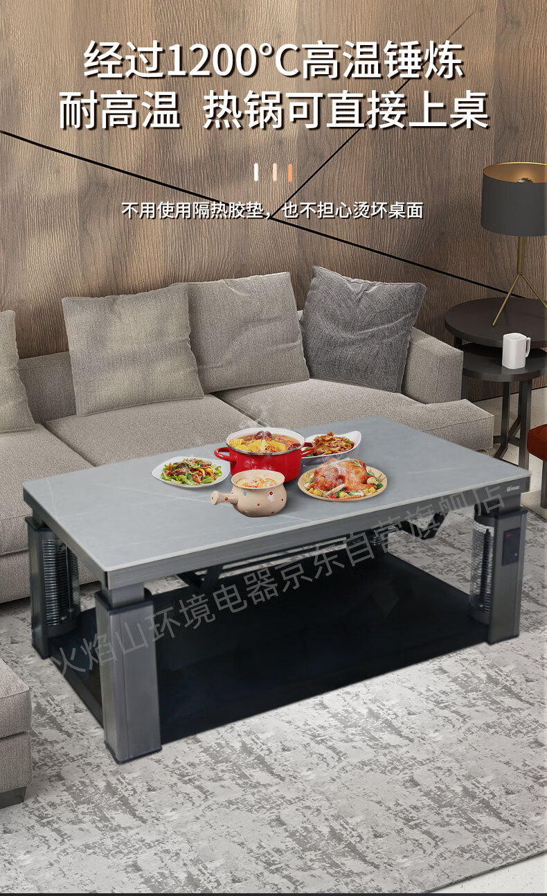 火焰山上下发热无炉款天威系列 电暖桌语音升降取暖桌电暖炉商用长方形烤火桌电烤桌茶几暖菜板