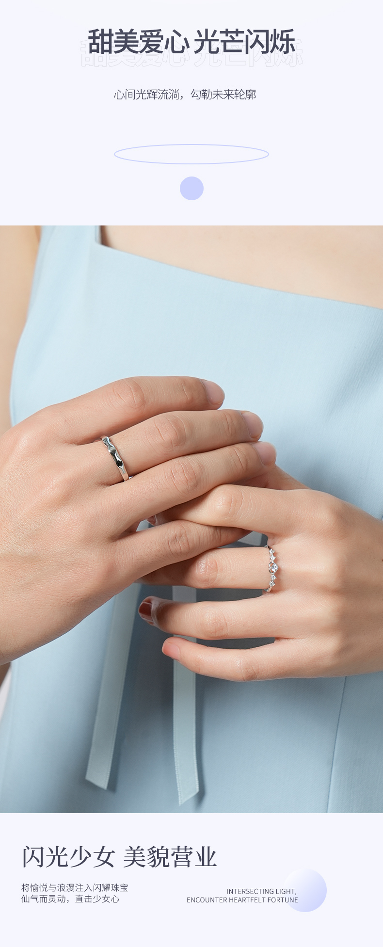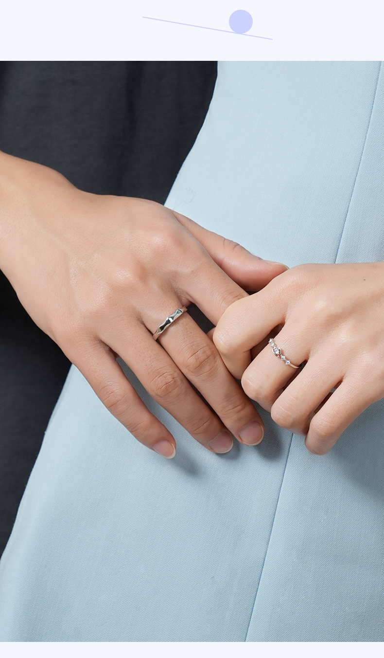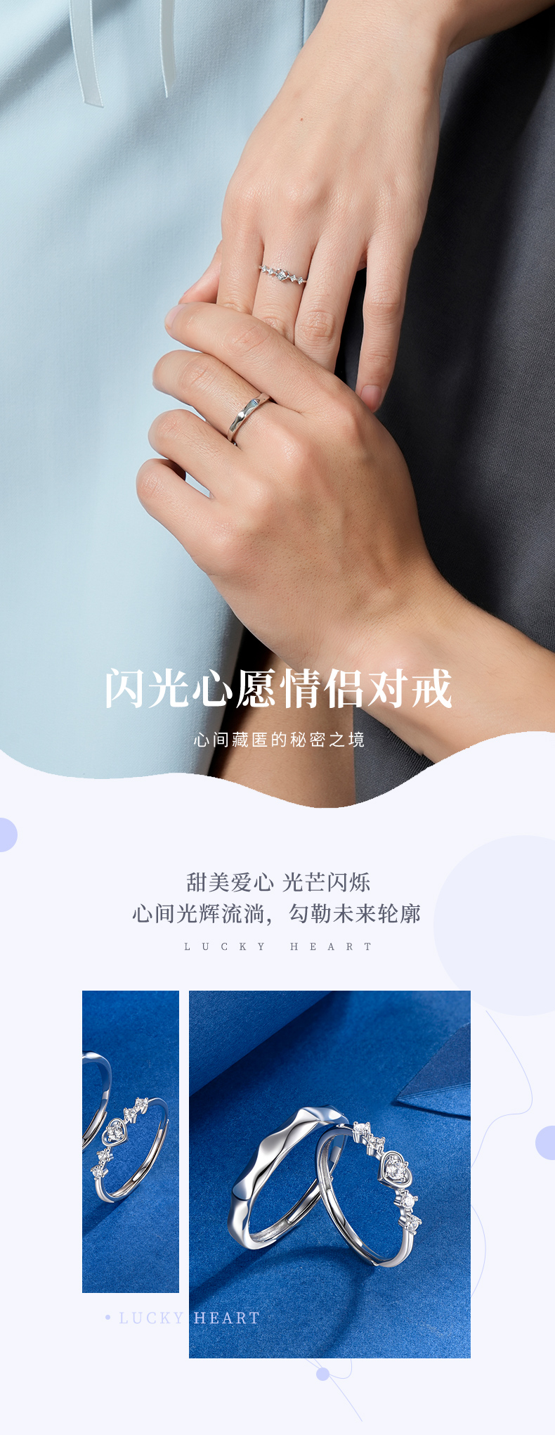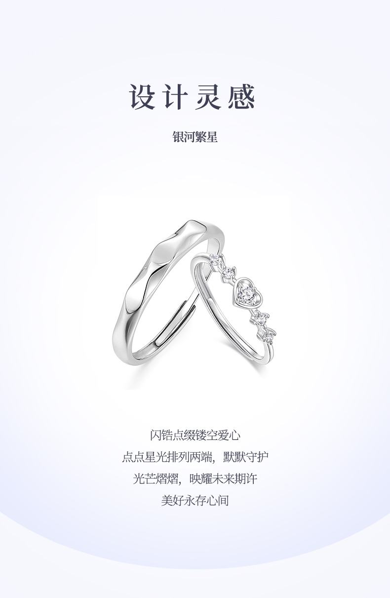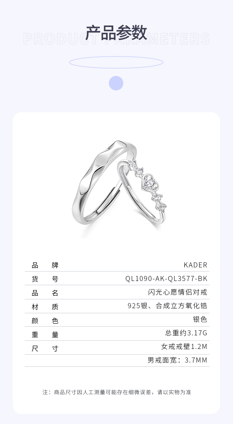 卡蒂罗/KADER 闪光心愿戒指 在逃公主甜蜜爱心满钻设计钟爱久久可调节素戒一对 恋爱频率闪耀星点配饰 925银