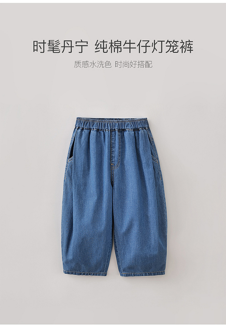马克珍妮时髦丹宁女童纯棉牛仔灯笼裤2026年夏装新款560717