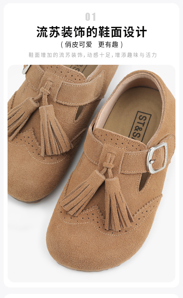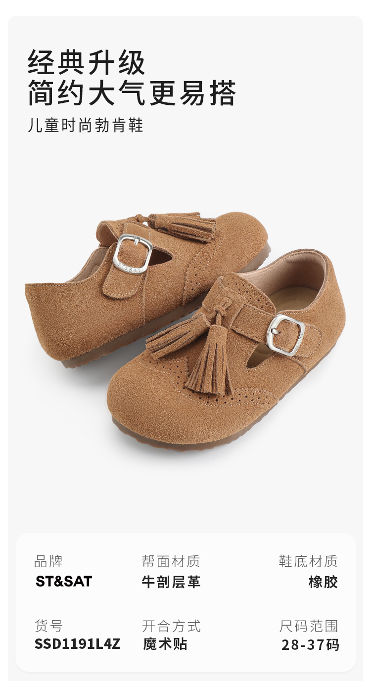 【童鞋】星期六巴洛克雕花复古流苏男女童全包勃肯鞋SSD1191L4Z
