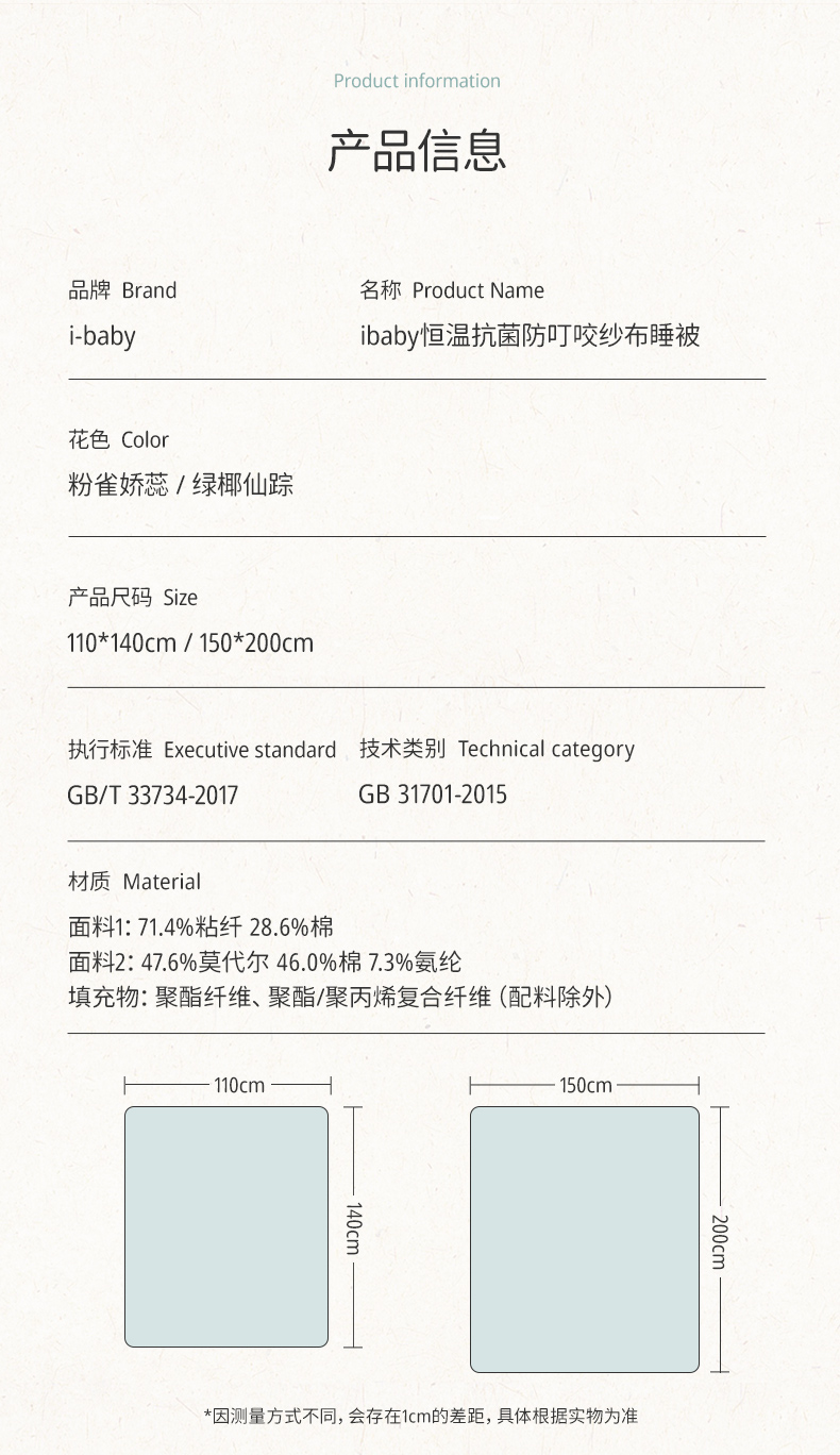 i-baby/英伦宝贝恒温睡被 防叮咬纱布睡被 儿童被 盖毯薄款四季可用