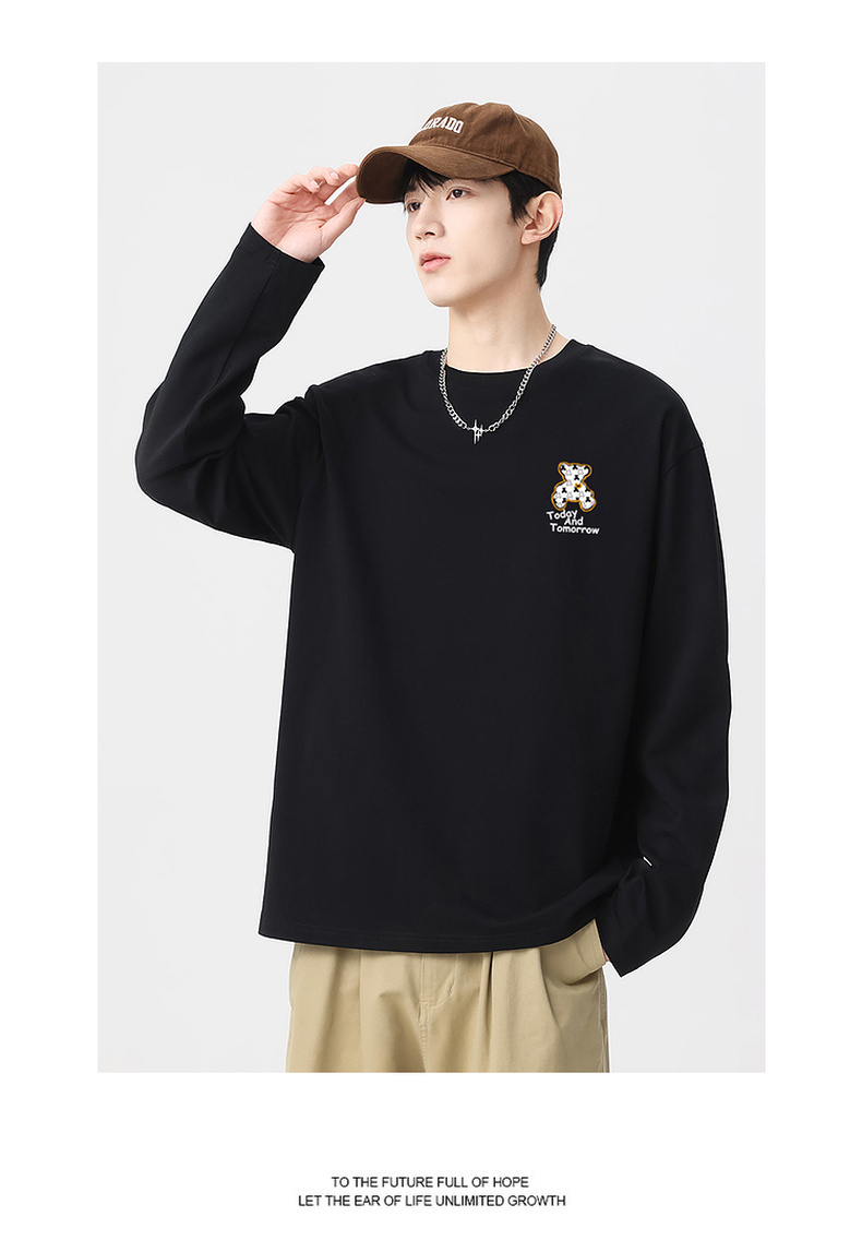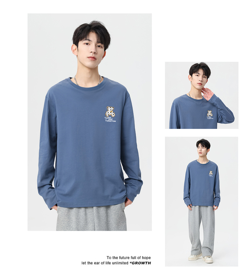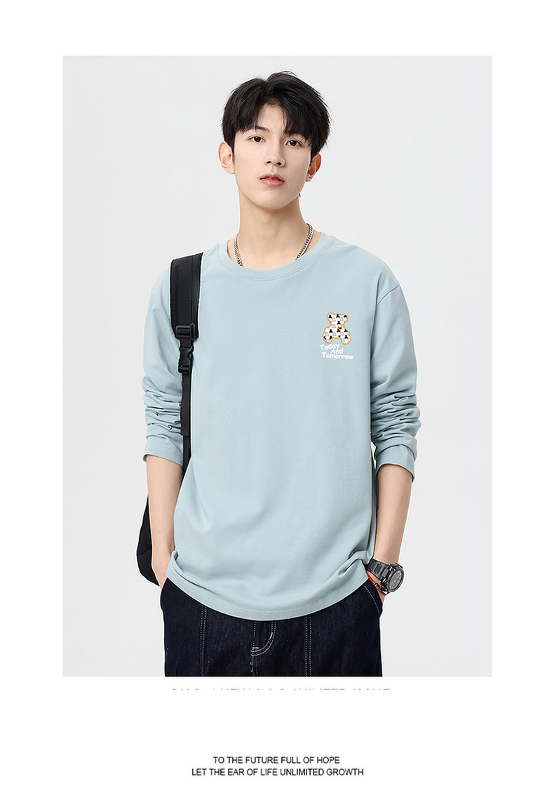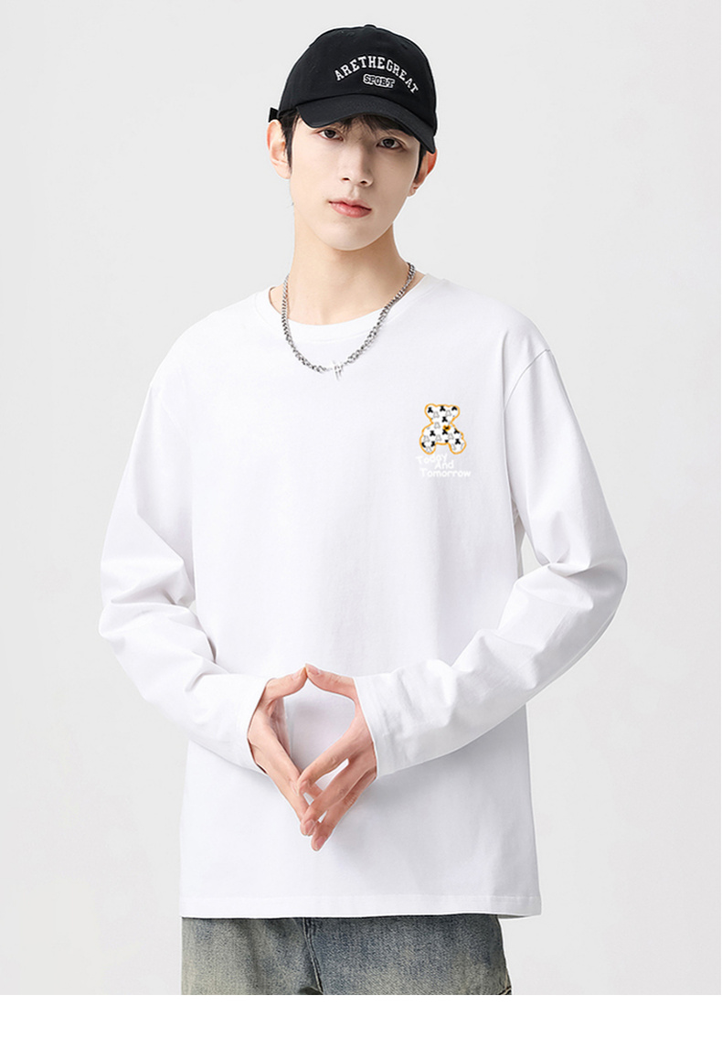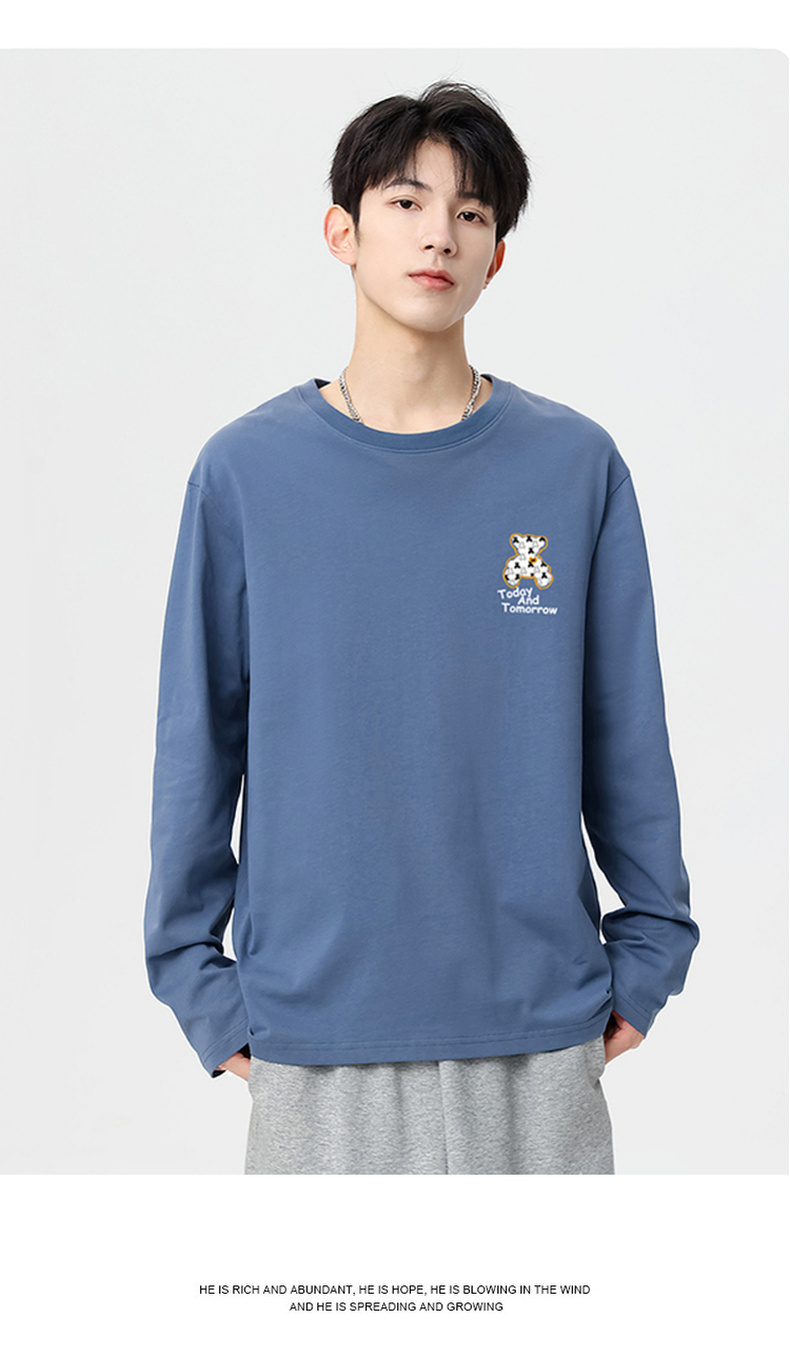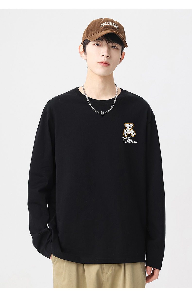 GXG男装【100%棉】秋季时尚卡通小熊舒适休闲男式圆领长袖T恤K&C