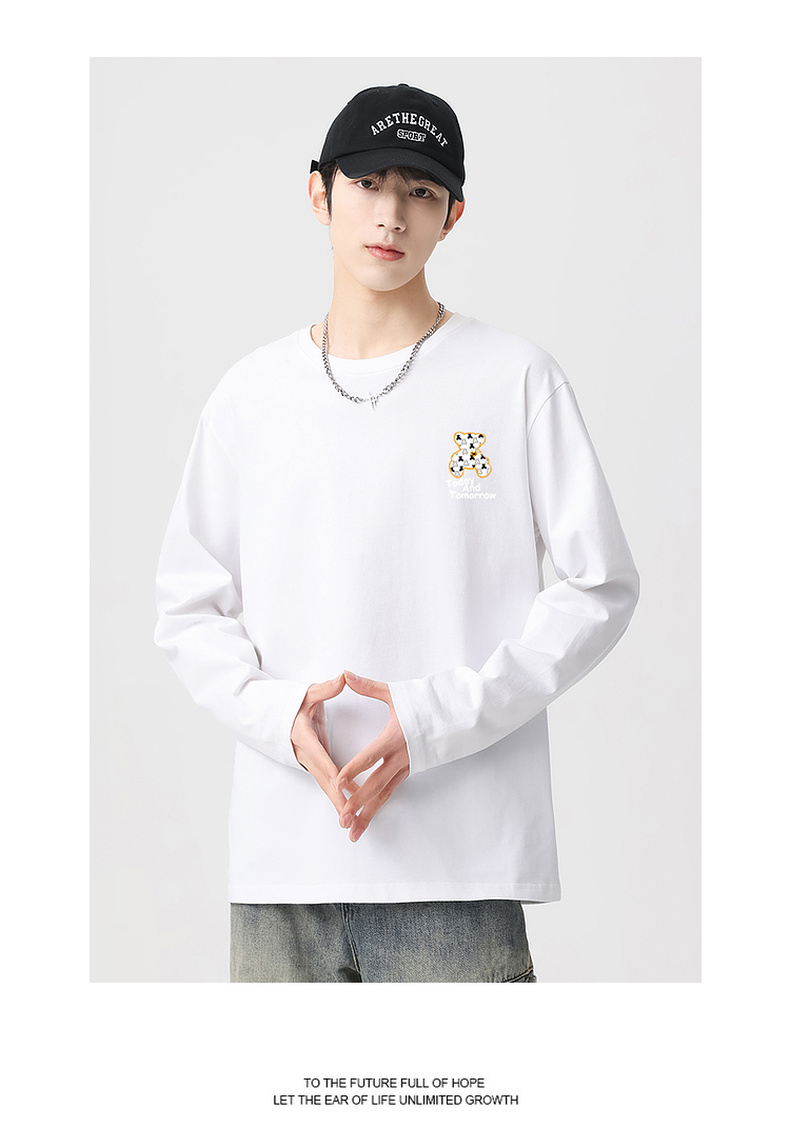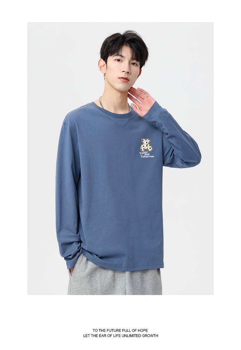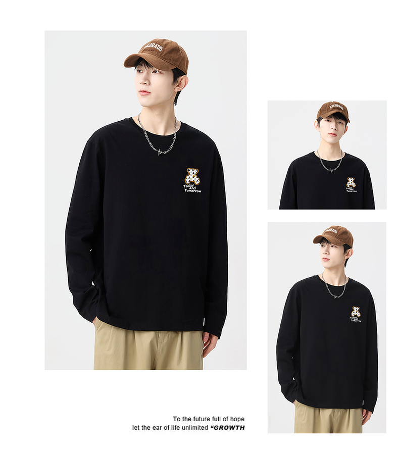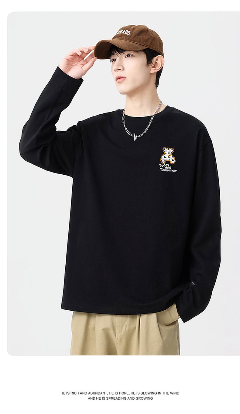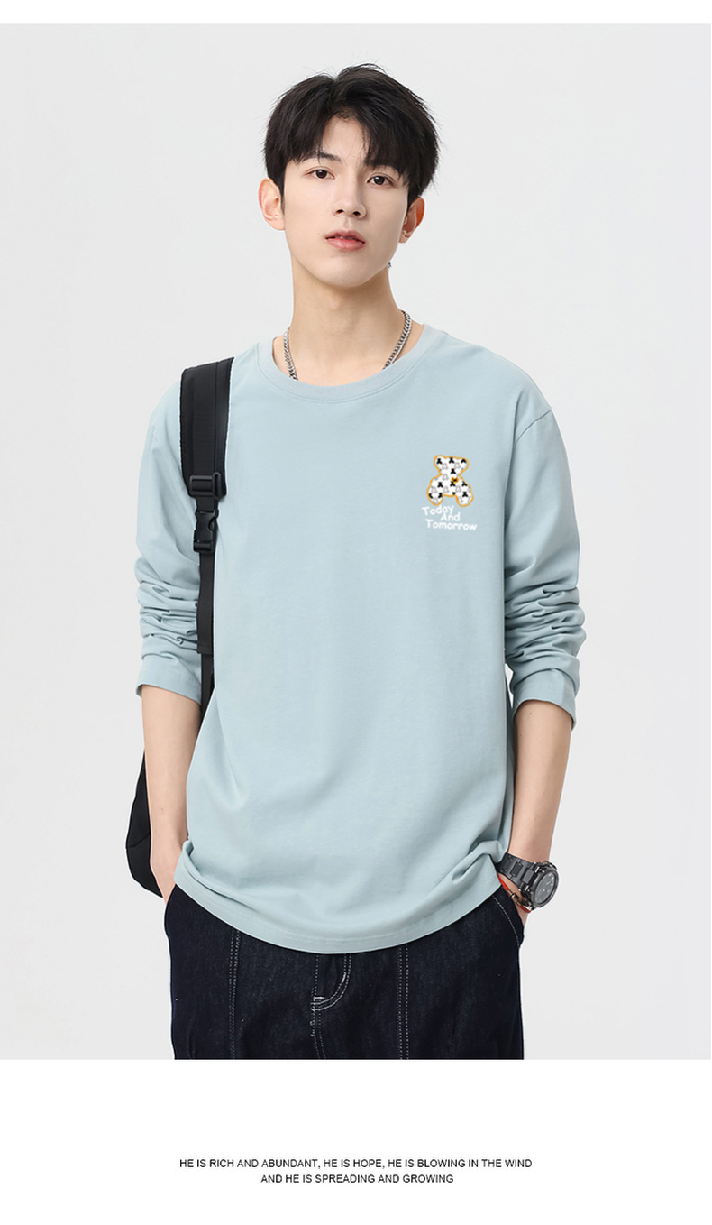 GXG男装【100%棉】秋季时尚卡通小熊舒适休闲男式圆领长袖T恤K&C