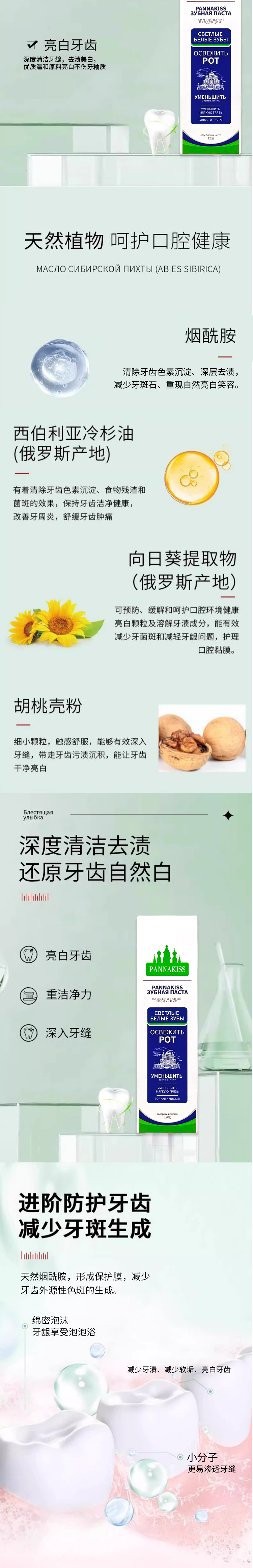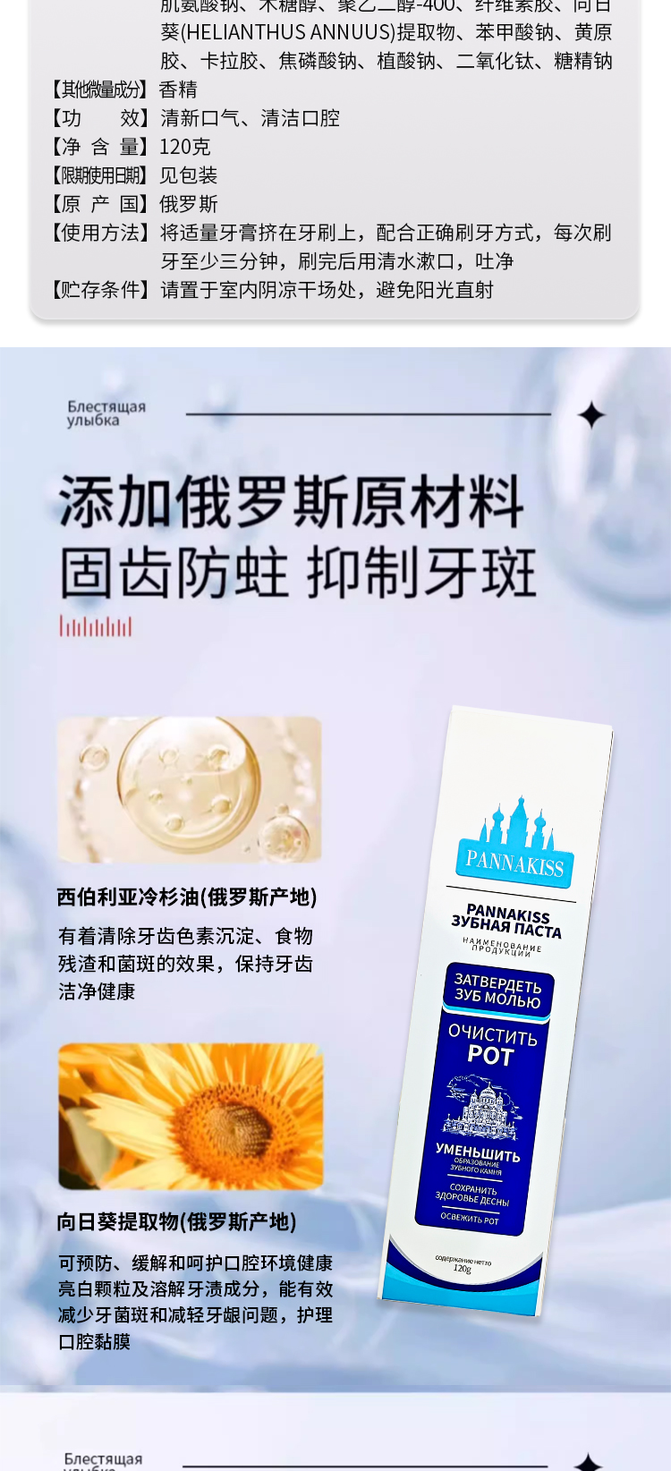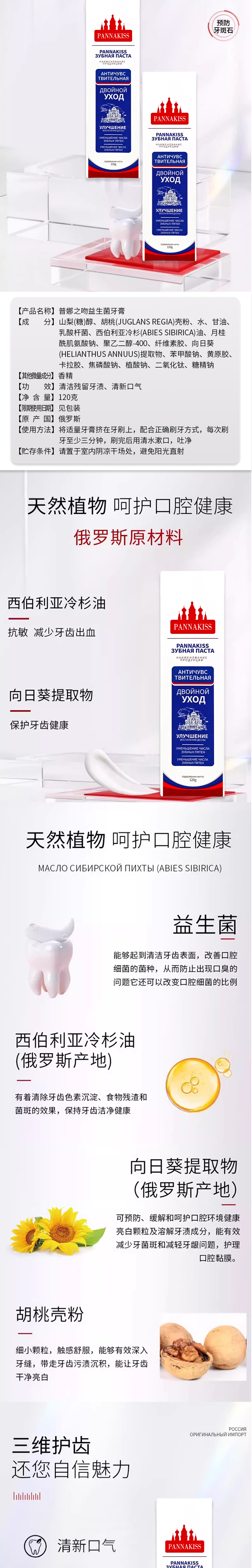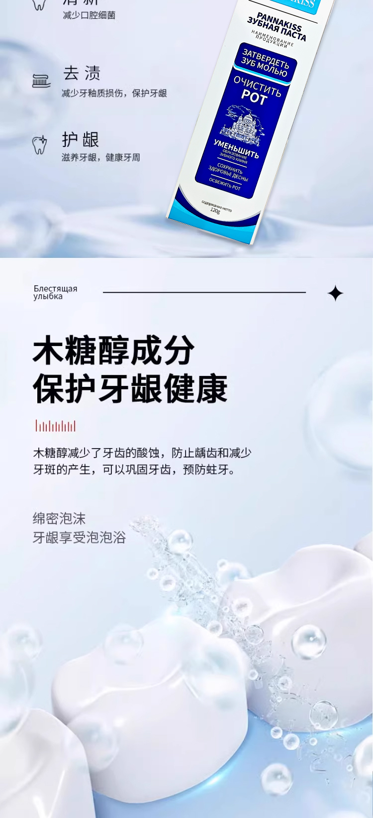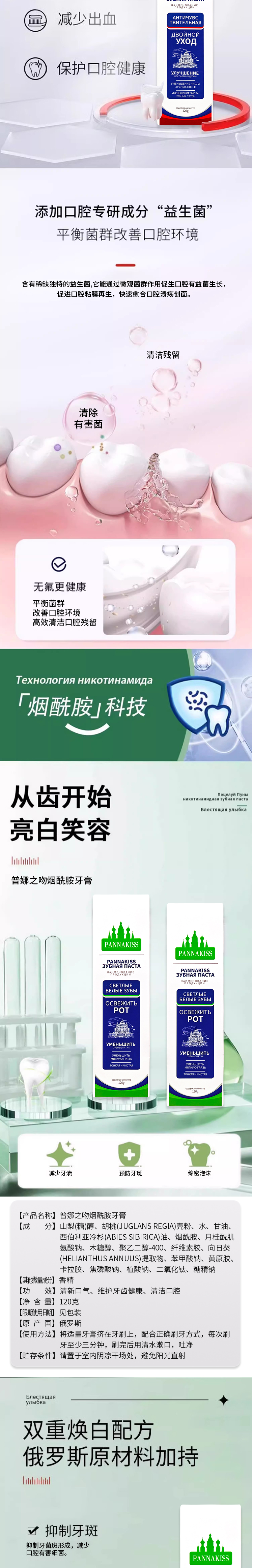 俄罗斯进口普娜之吻牙膏120g 【烟酰胺丨益生菌丨木糖醇型】